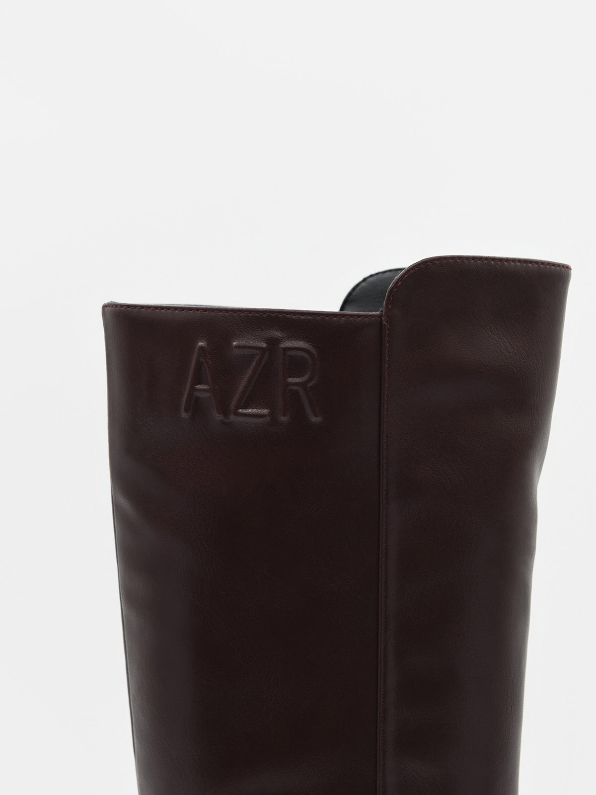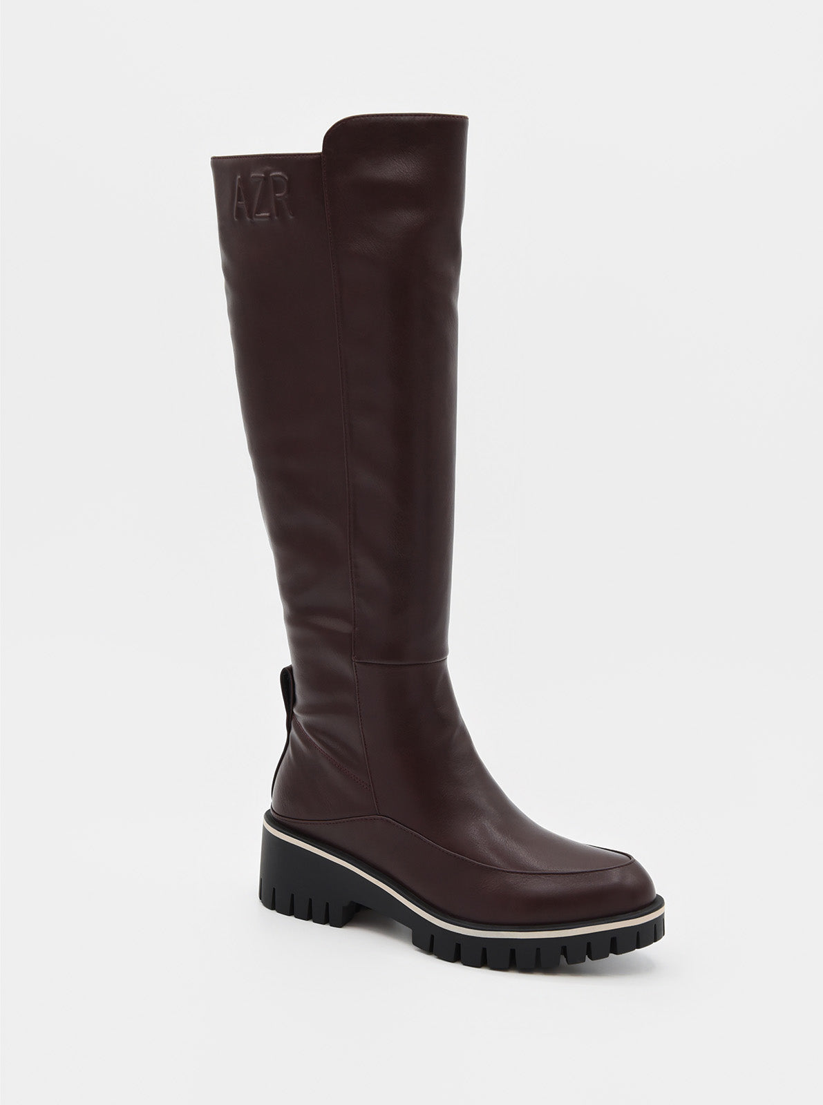 Atrévete a marcar tendencia con esta bota alta burdeos de mujer, un diseño que combina elegancia atemporal y estilo vanguardista. Confeccionada en material vegano premium, destaca por su tono burdeos profundo, sofisticado y versátil, perfecto para elevar tus looks otoñales e invernales. La suela gruesa dentada con contraste en tono claro añade un aire moderno y cómodo, ideal para caminar con seguridad sin renunciar a la feminidad. El detalle del logo AZR grabado en la caña refuerza su exclusividad y aporta ese toque de identidad que distingue a AZAREY.