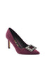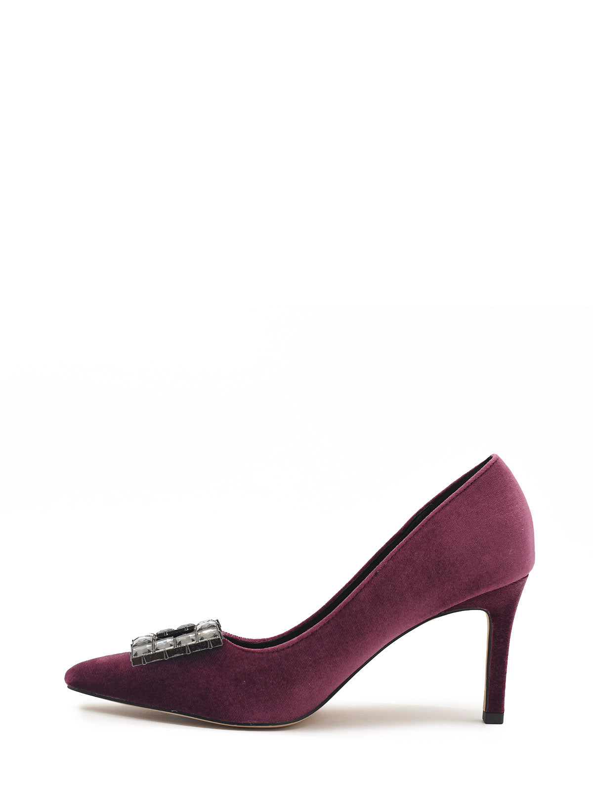 La elegancia que te dará este zapato de salón en terciopelo para mujer con tacón fino es indescriptible. Con un adorno de joya en pala que le da un toque más sofisticado a esos looks de fiesta, en un color rosa oscuro muy combinable, además de aportarte comodidad y estilo para esta temporada de Invierno.
