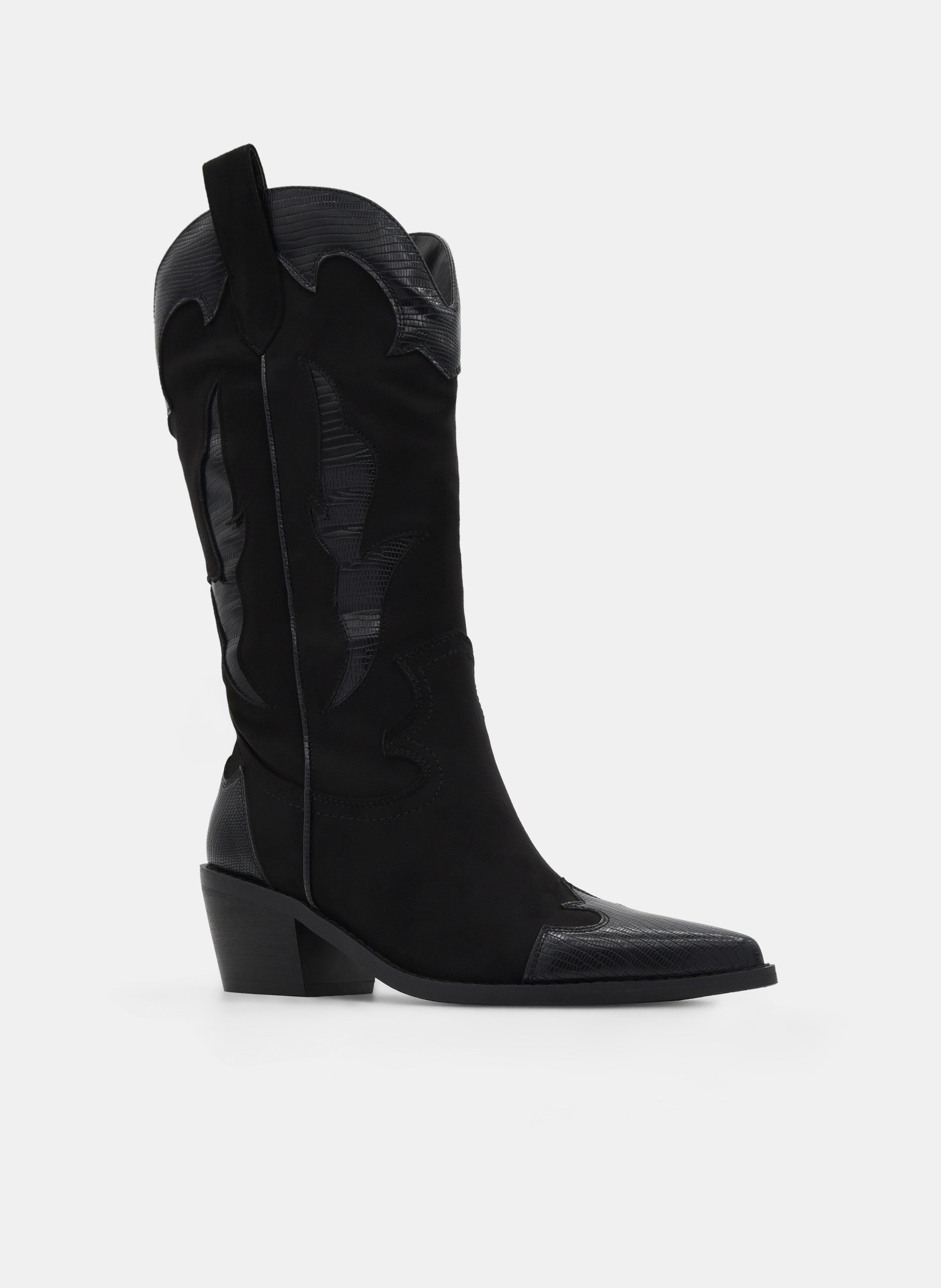 BOTAS COWBOY NEGRAS TACÓN MEDIO