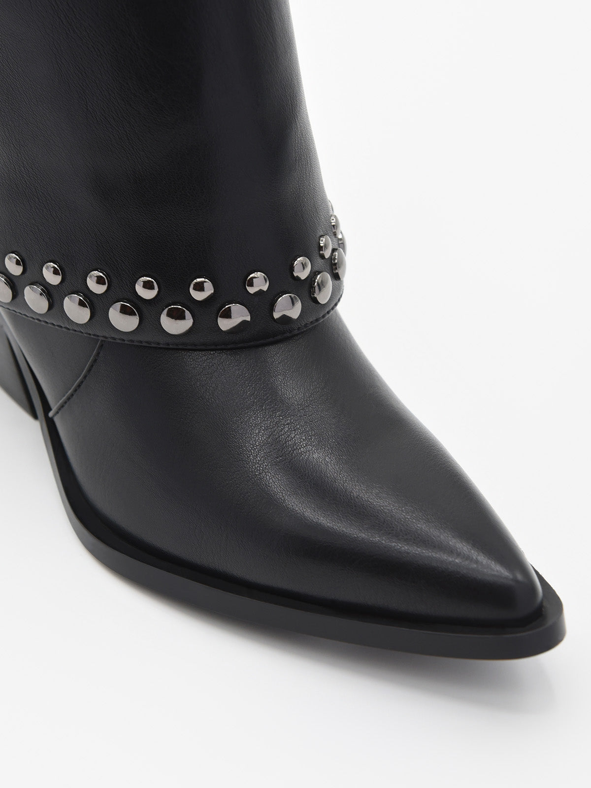 These Black cowboy boots with studs They fuse style and comfort exceptionally. Made in an elegant smooth finishing material, they have an original upper round adorned with silver studs that provide a modern and daring air, reinventing the Western style with a contemporary character.