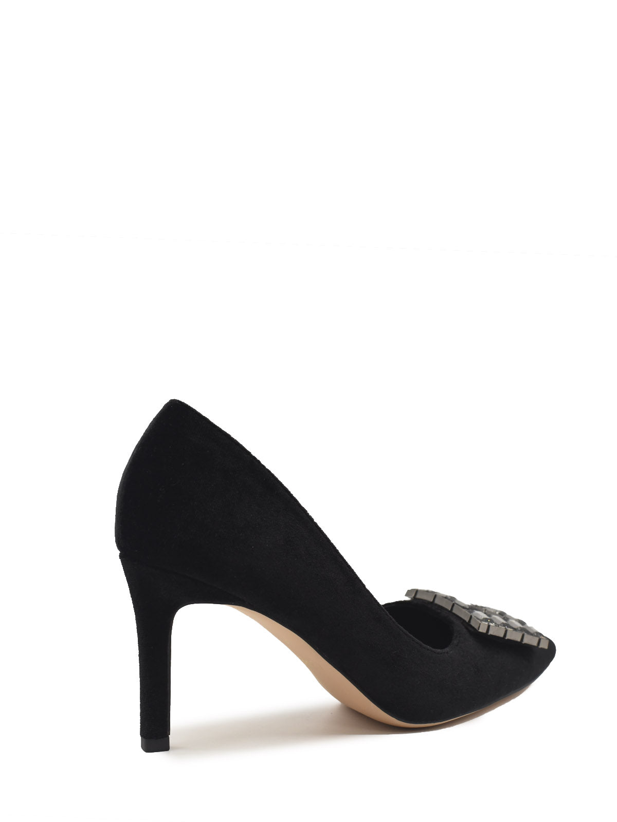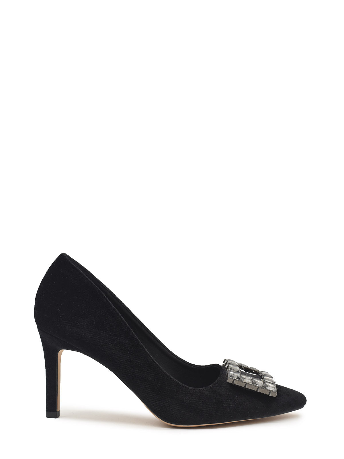 The elegance that this safety shoe will give you for velvet for women with fine heel is indescribable. With a jewel ornament that gives a more sophisticated touch to those party looks, in a very combinable black color, in addition to providing comfort and style for this winter season.