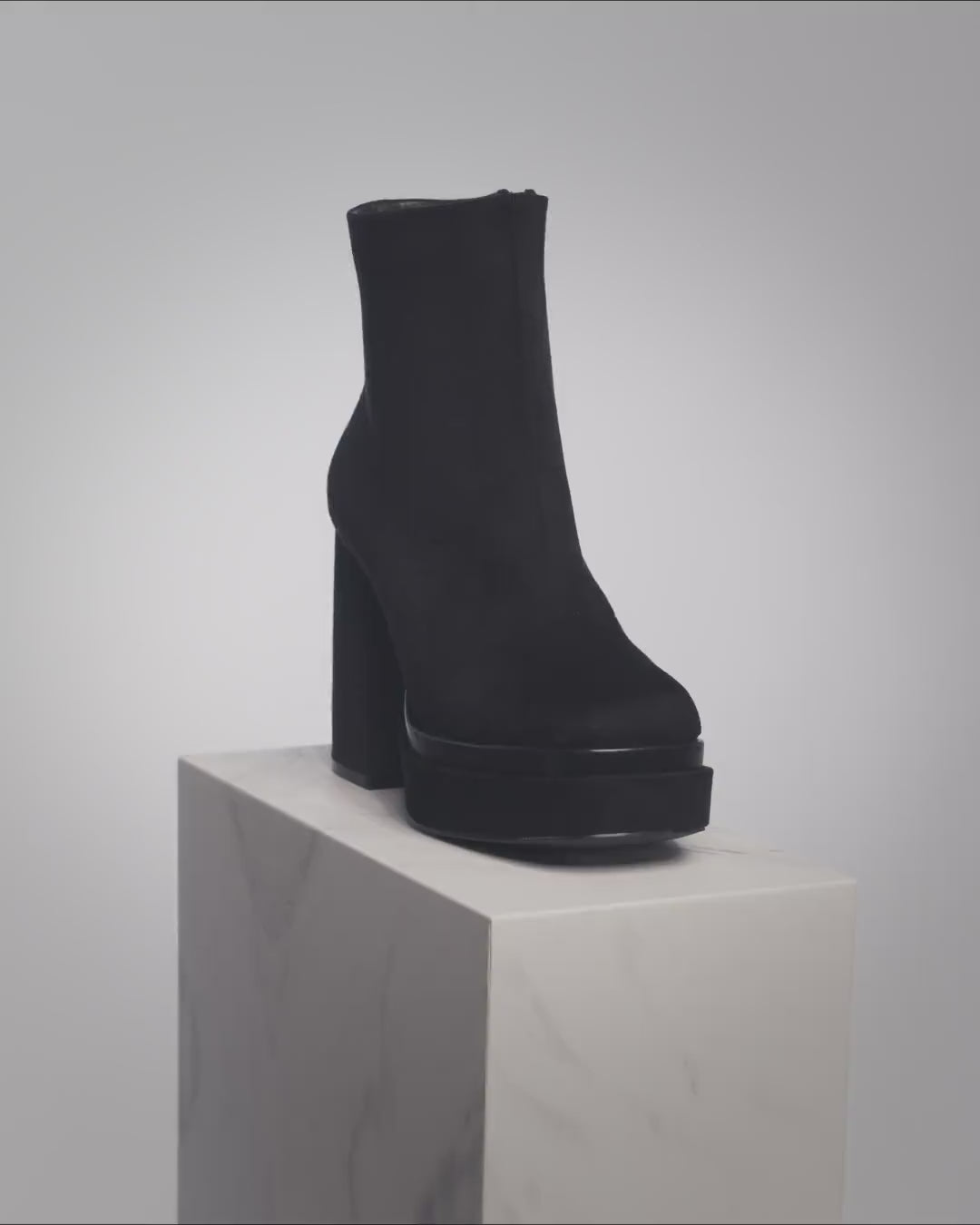 Heeled ankle boot with platform in black