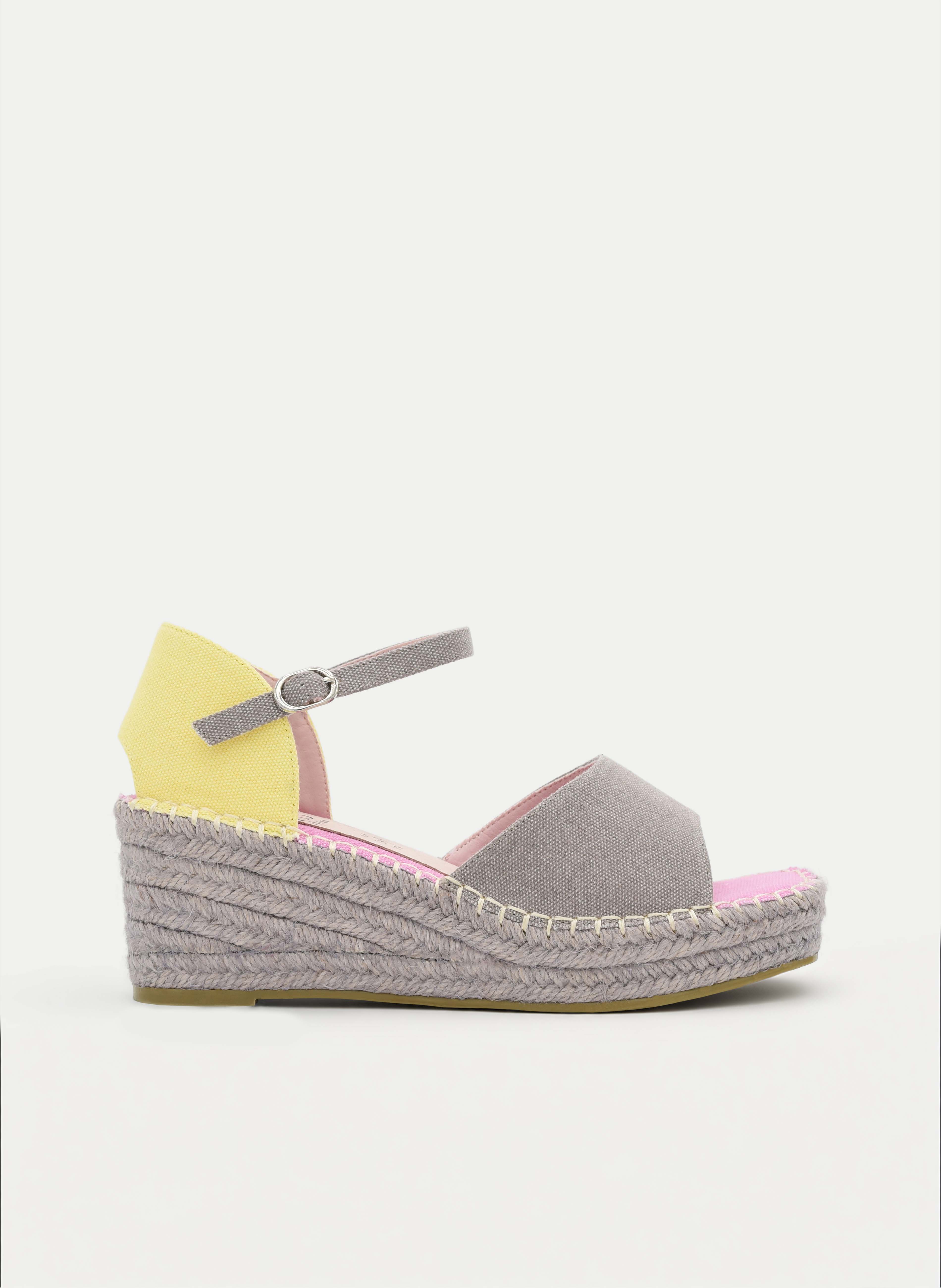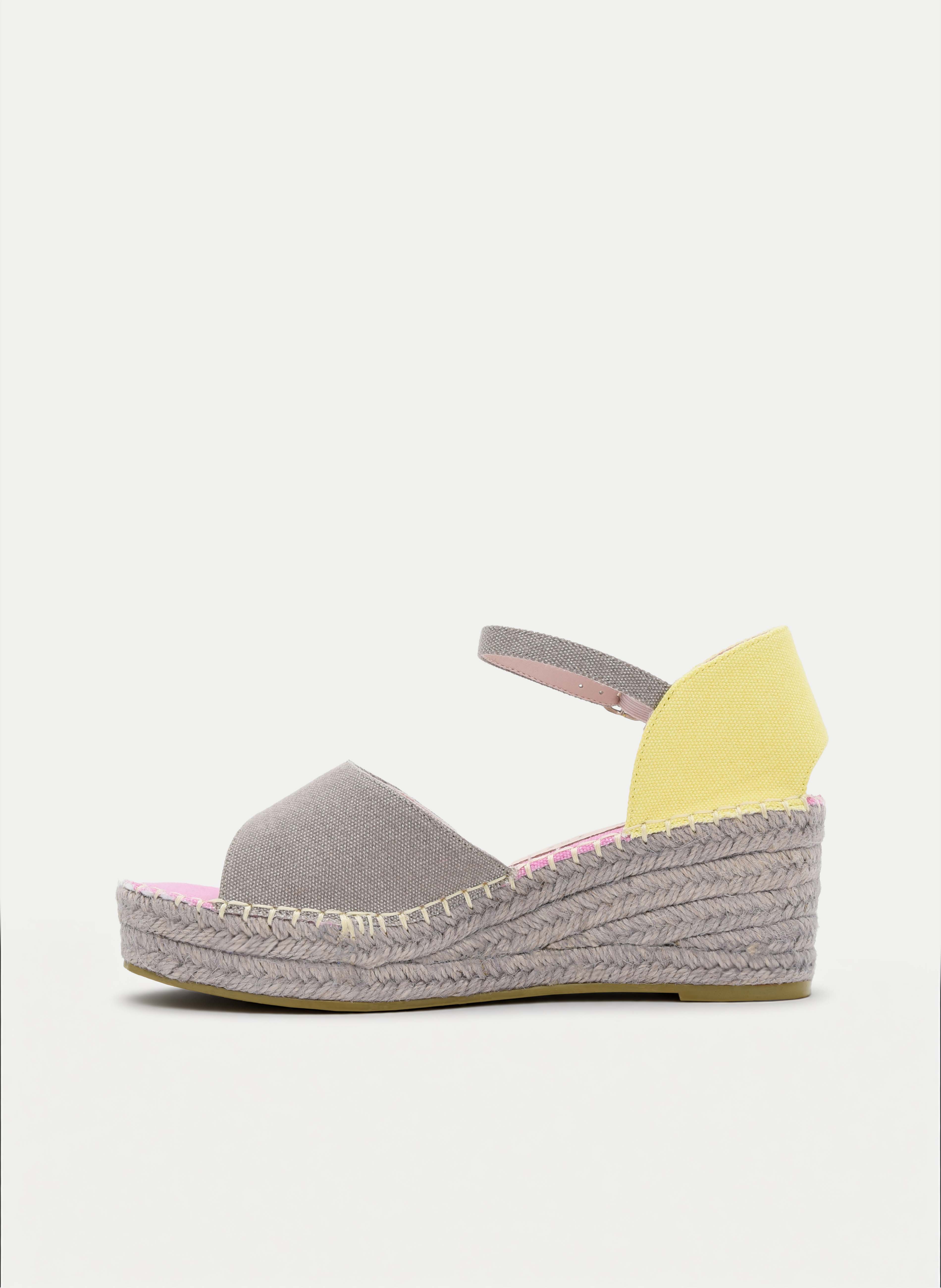 These wedge espadrilles in shades of gray and yellow offer the perfect balance between elegance and freshness. A modern and radiant design that enhances any outfit thanks to its soft and sophisticated color combination, ideal for those looking for a polished style with a unique touch.