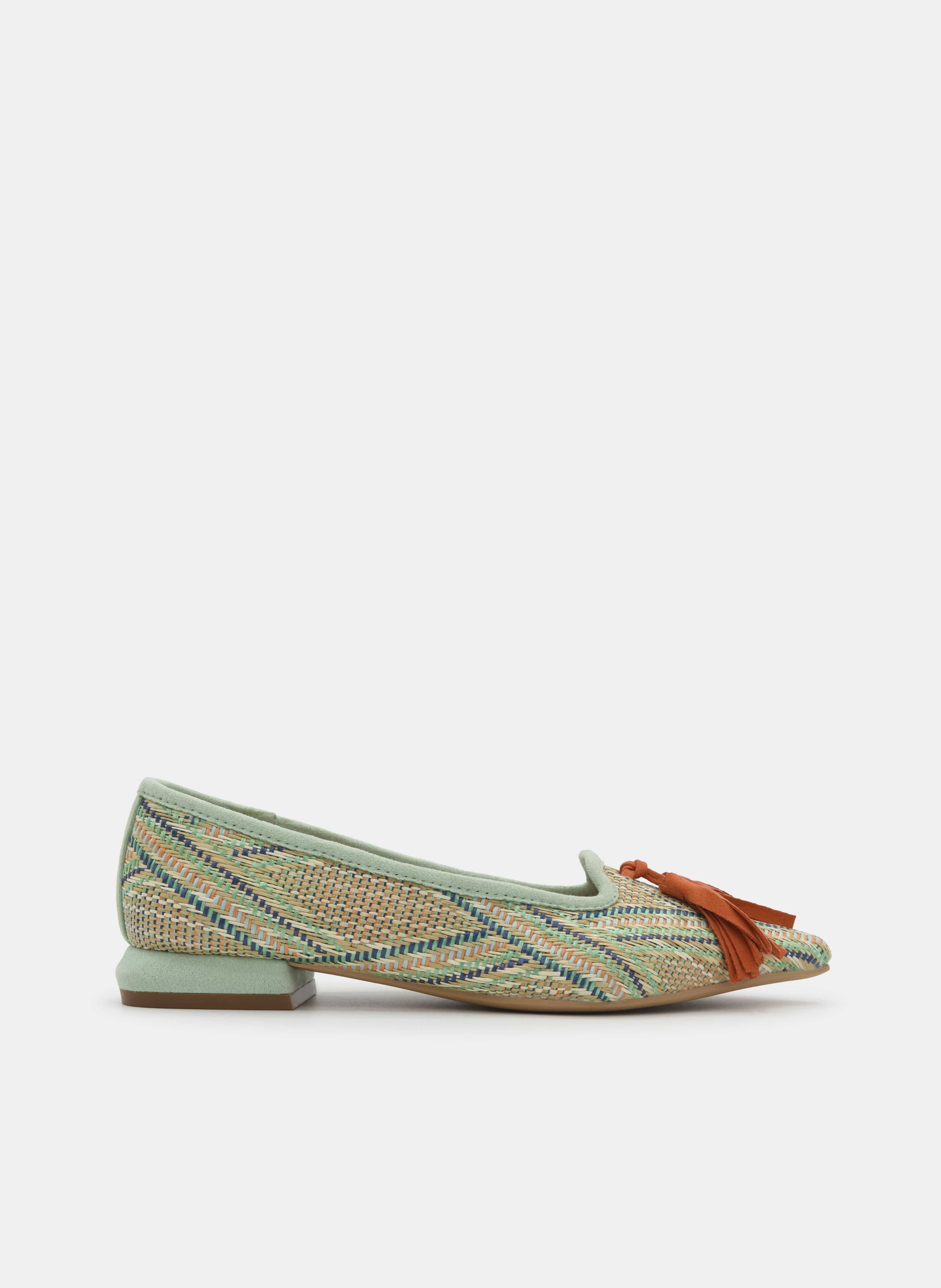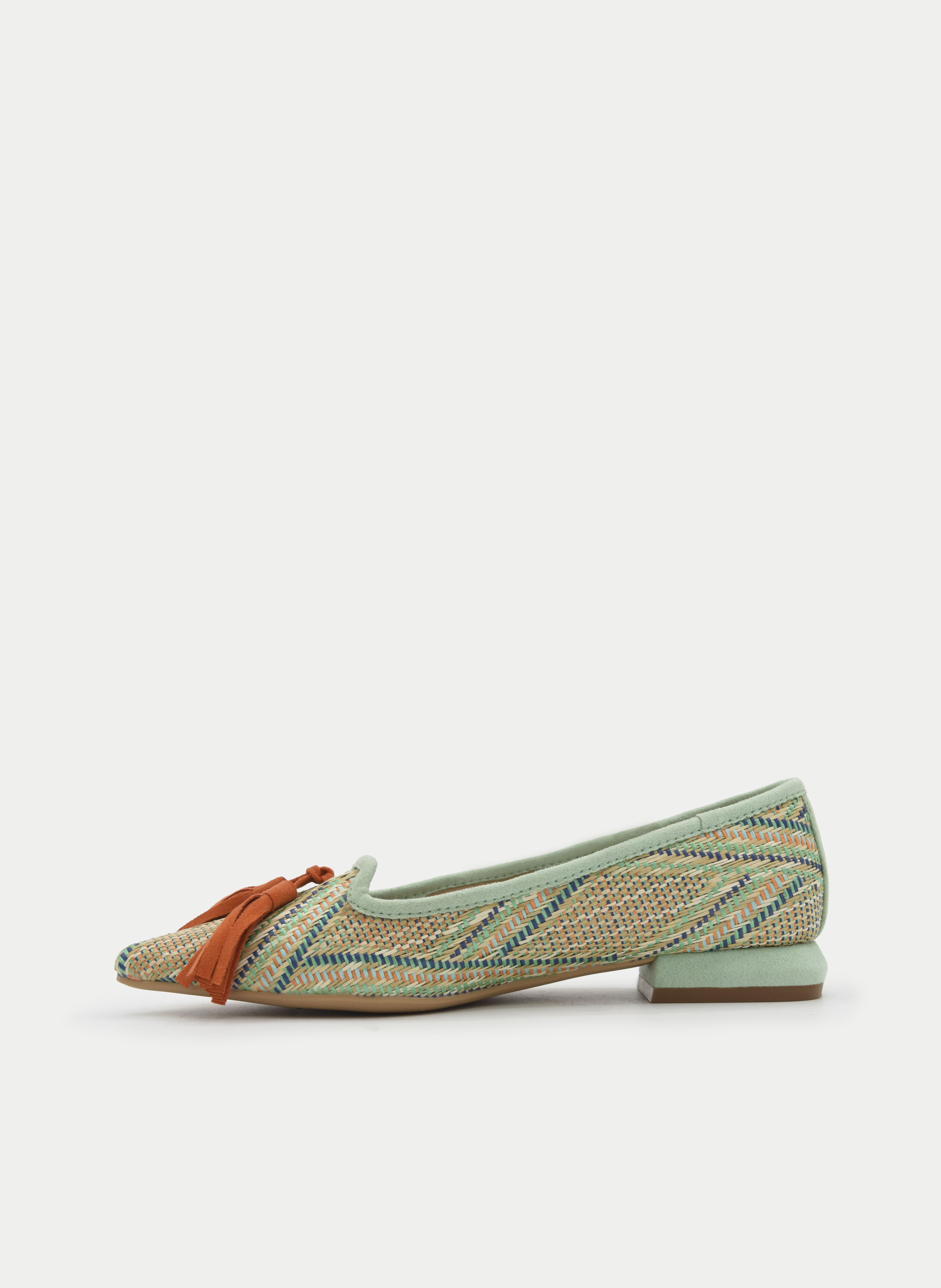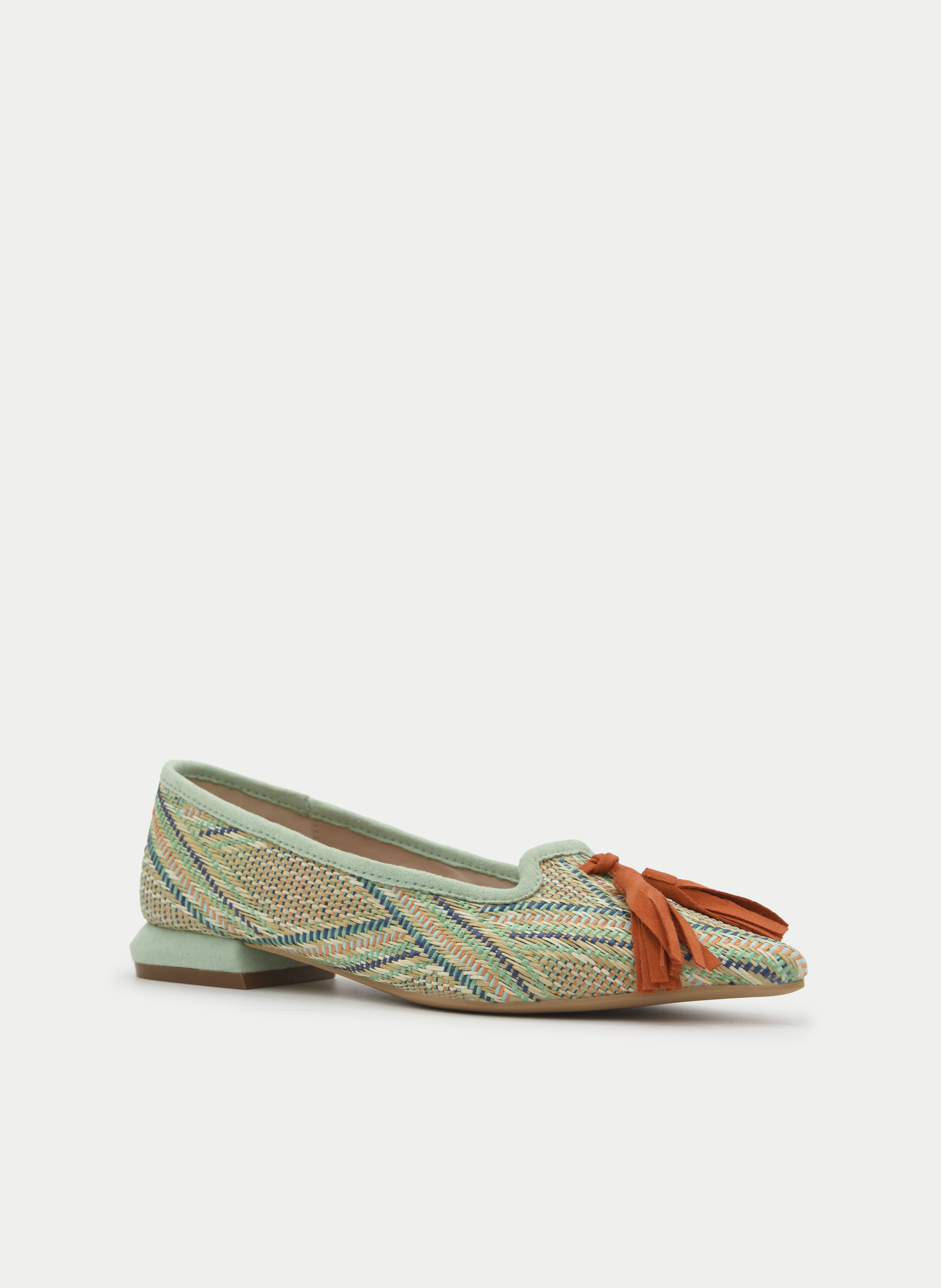 Sophisticated, original, and with a handcrafted touch that makes all the difference. These multicolor mint-toned ballerinas reinterpret the classic flat shoe with a design full of personality. Their streamlined silhouette and contrasting tassel detail add a chic flair that elevates any outfit.
