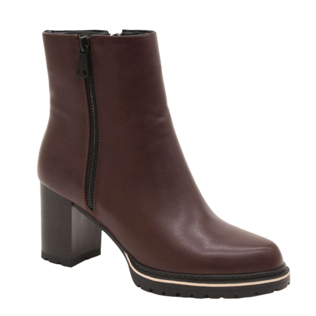 BOTINES BURDEOS CON TACÓN ANCHO Y CREMALLERA LATERAL