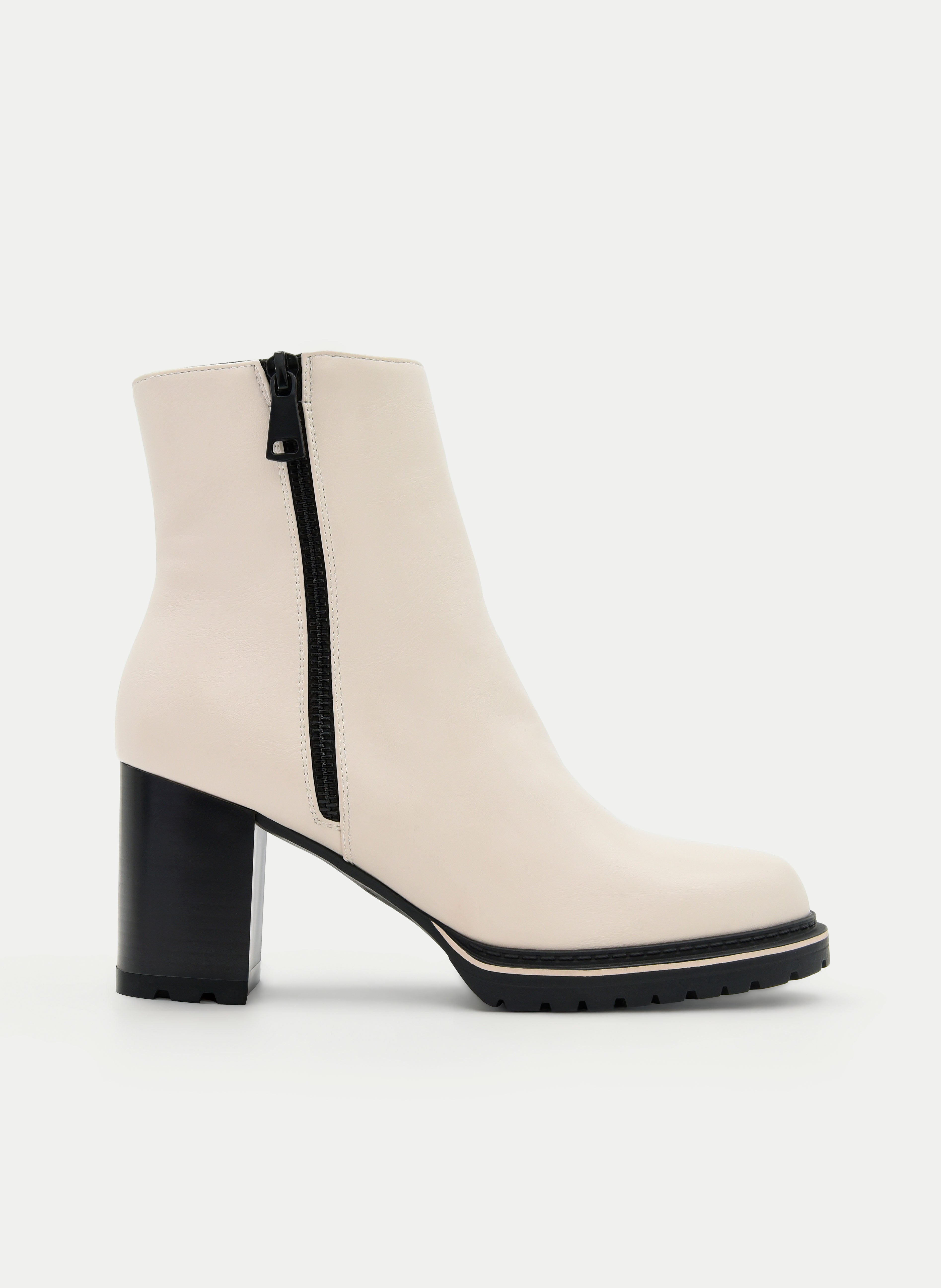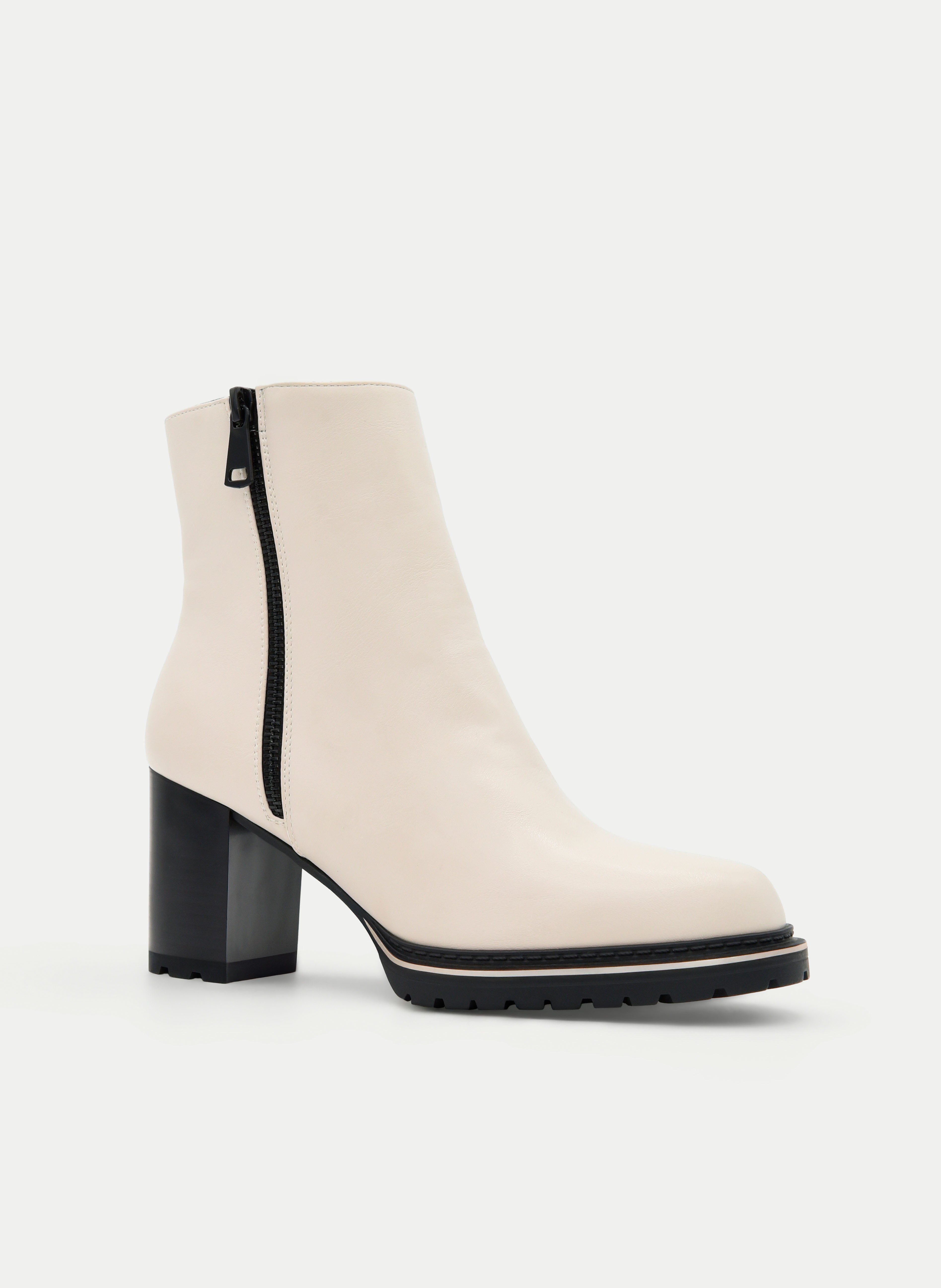 Este botín en color hielo es la elección perfecta para quienes buscan un diseño moderno, luminoso y extremadamente combinable. Su silueta depurada y su tacón bloque cómodo lo convierten en un imprescindible para el día a día con estilo. La cremallera lateral aporta practicidad y un toque contemporáneo, mientras que la planta de piel garantiza una pisada suave y confortable durante horas.