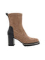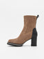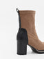 Urban sophistication and timeless style shake hands in this Camel mountain botin With black contrast, a key piece to raise your autumn-winter looks. Manufactured in a soft Material effect before, this design stands out for its clean silhouette, high wide heel and a dentated sole with modern finish, which provides comfort and safety when walking.
