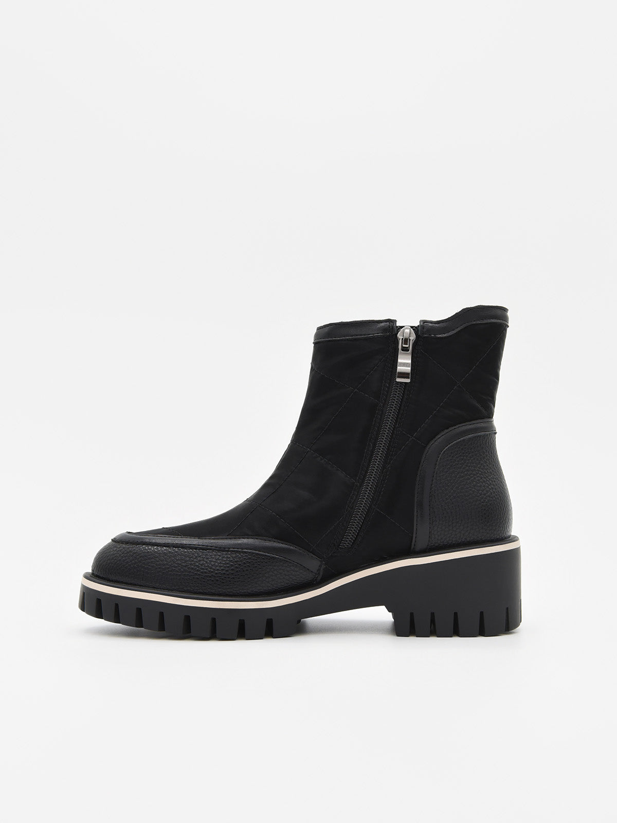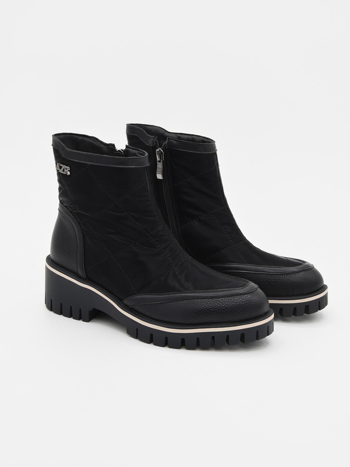 Dare to dress the winter with attitude with this Women's black padded booty, a sophisticated, versatile and very trend design. Your finish in Romboidal padded, combined with details in textured synthetic skin And trim in tune, make it the perfect model to raise any seasonal look.