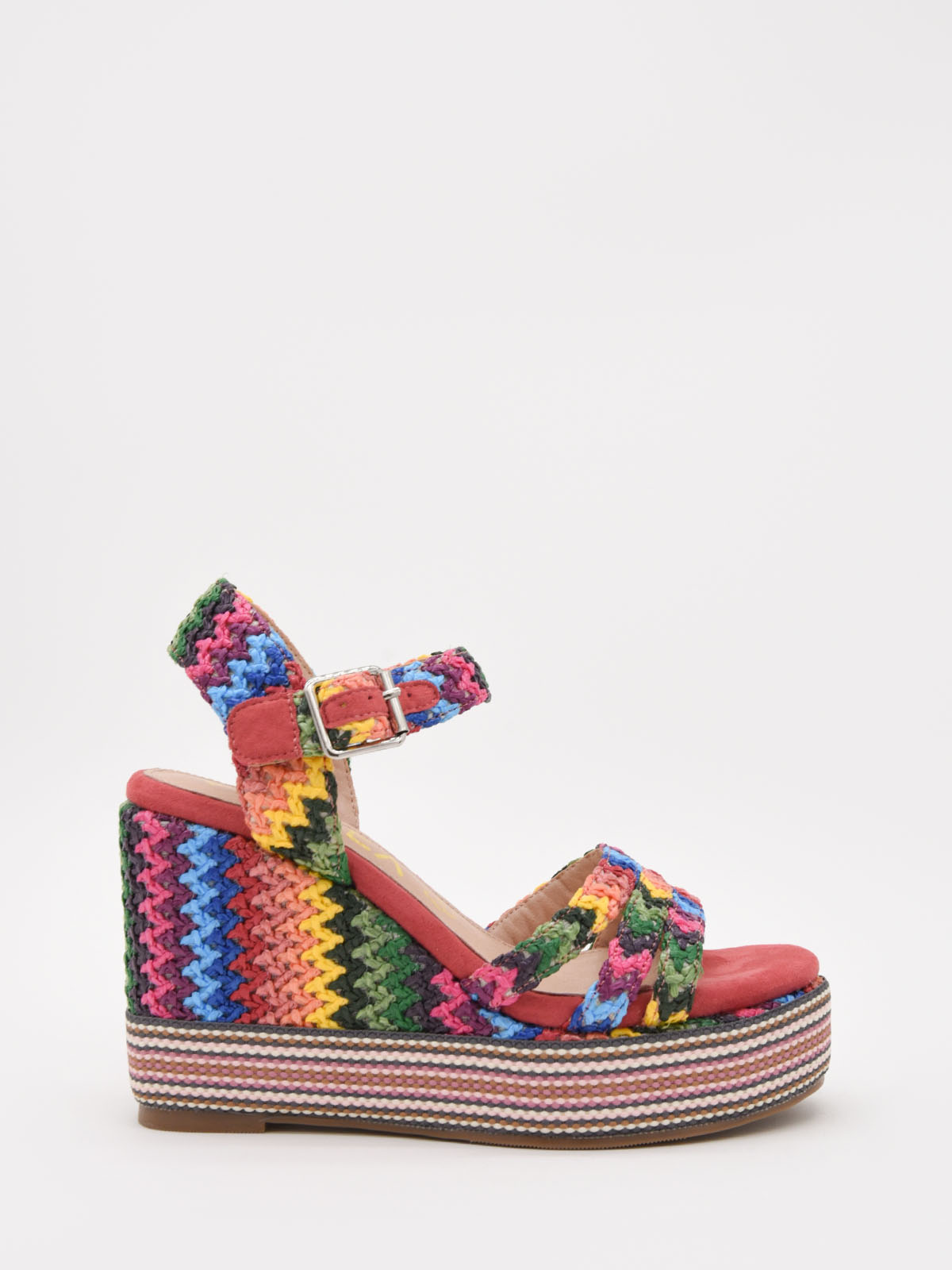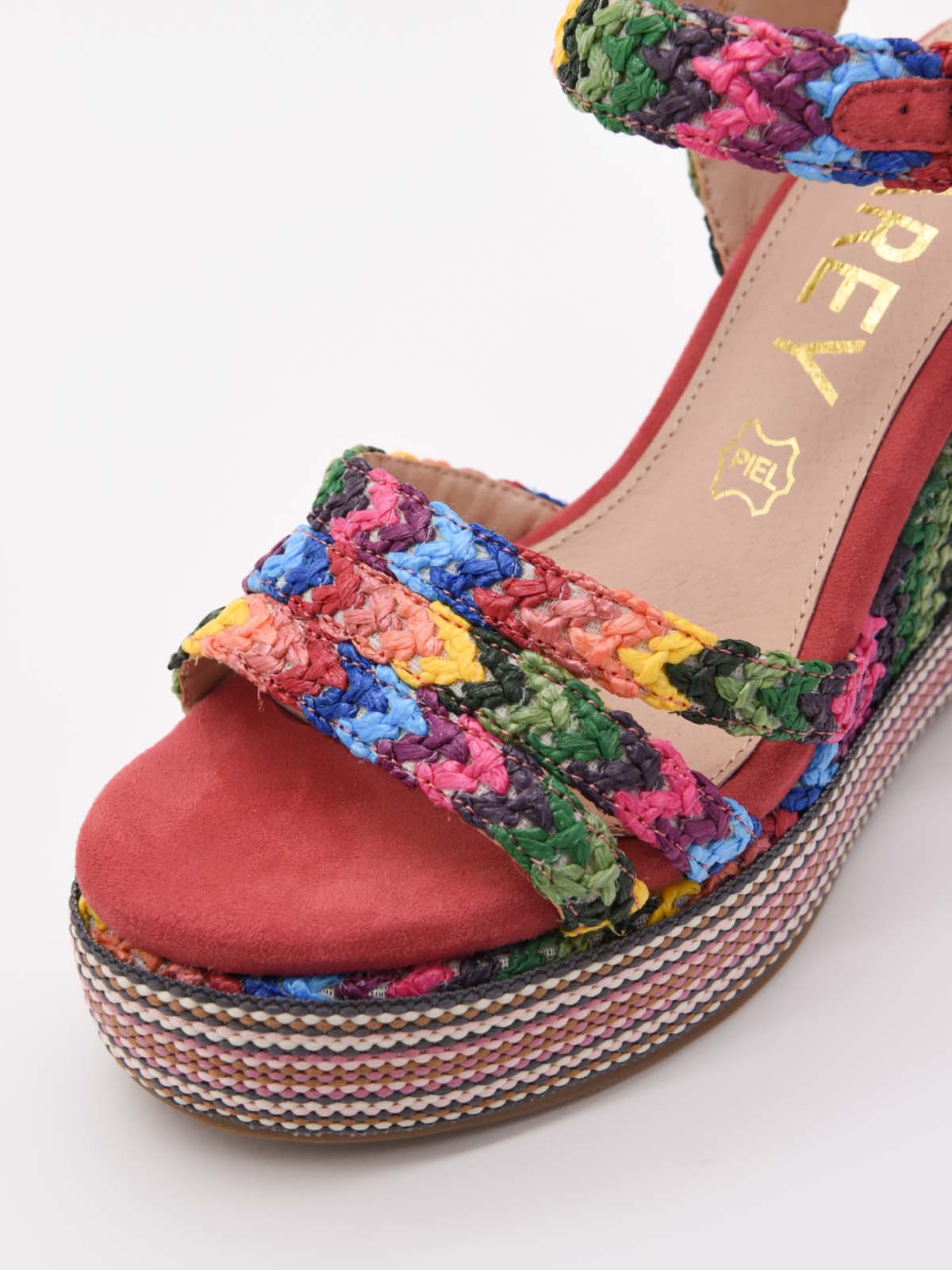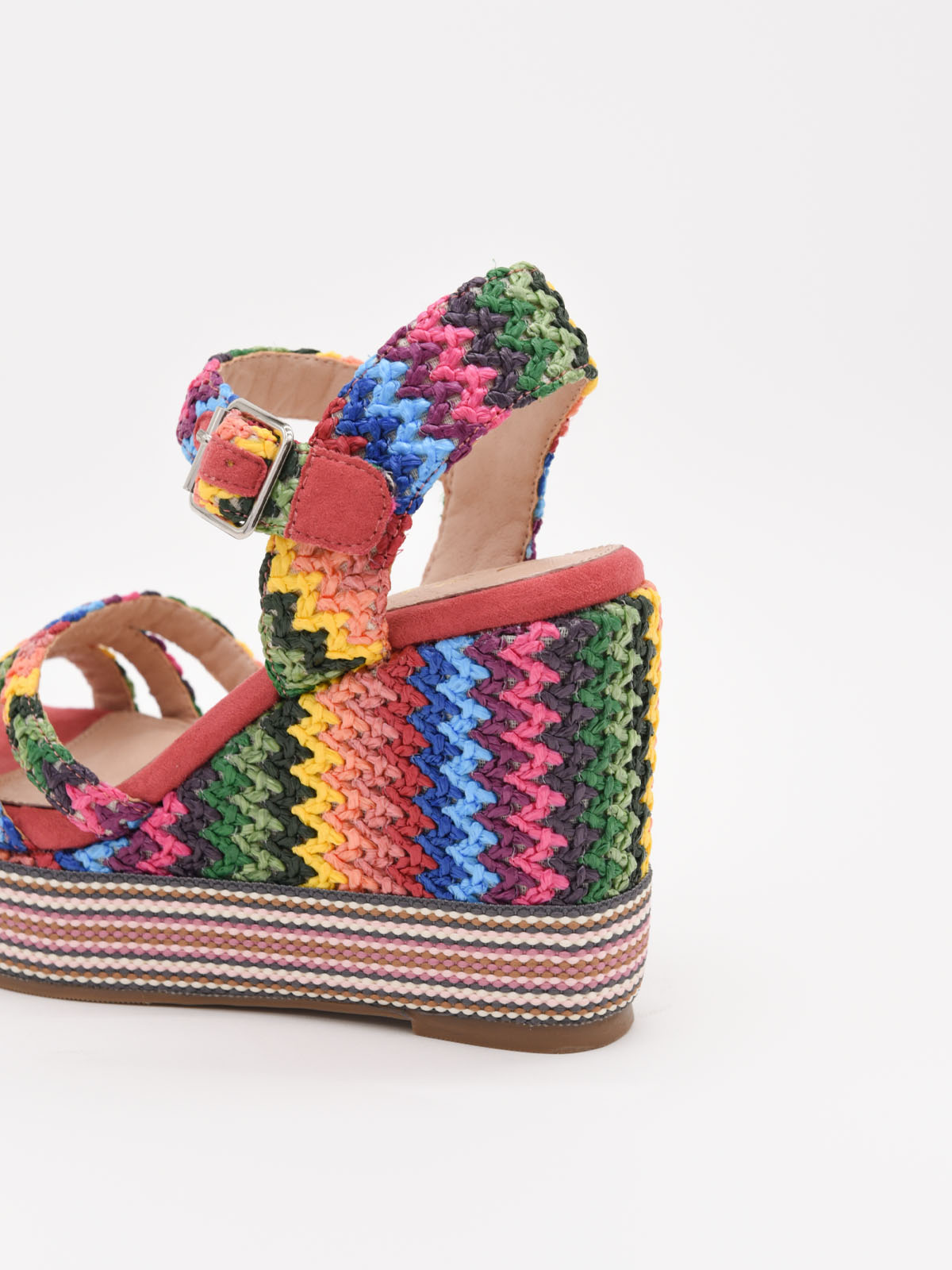 Estas sandalias de cuña coral multicolor destacan por su diseño tejido artesanal y su plataforma que combina comodidad y elegancia. Perfectas para largos días de verano, ofrecen un ajuste seguro gracias a su correa ajustable y su base acolchada. La cuña estiliza la figura mientras que los colores vivos aportan un toque alegre y moderno a tus looks. Una elección versátil para lucir cómoda y con estilo en cualquier ocasión.