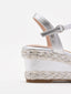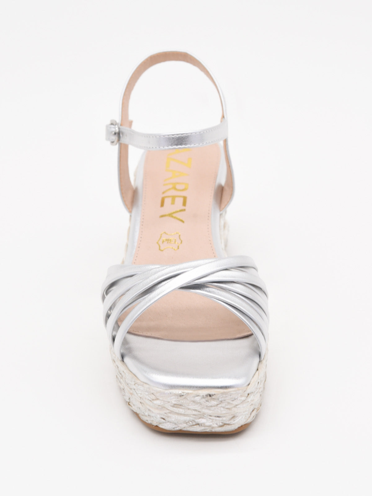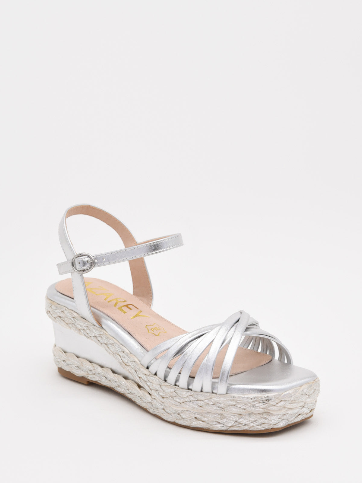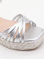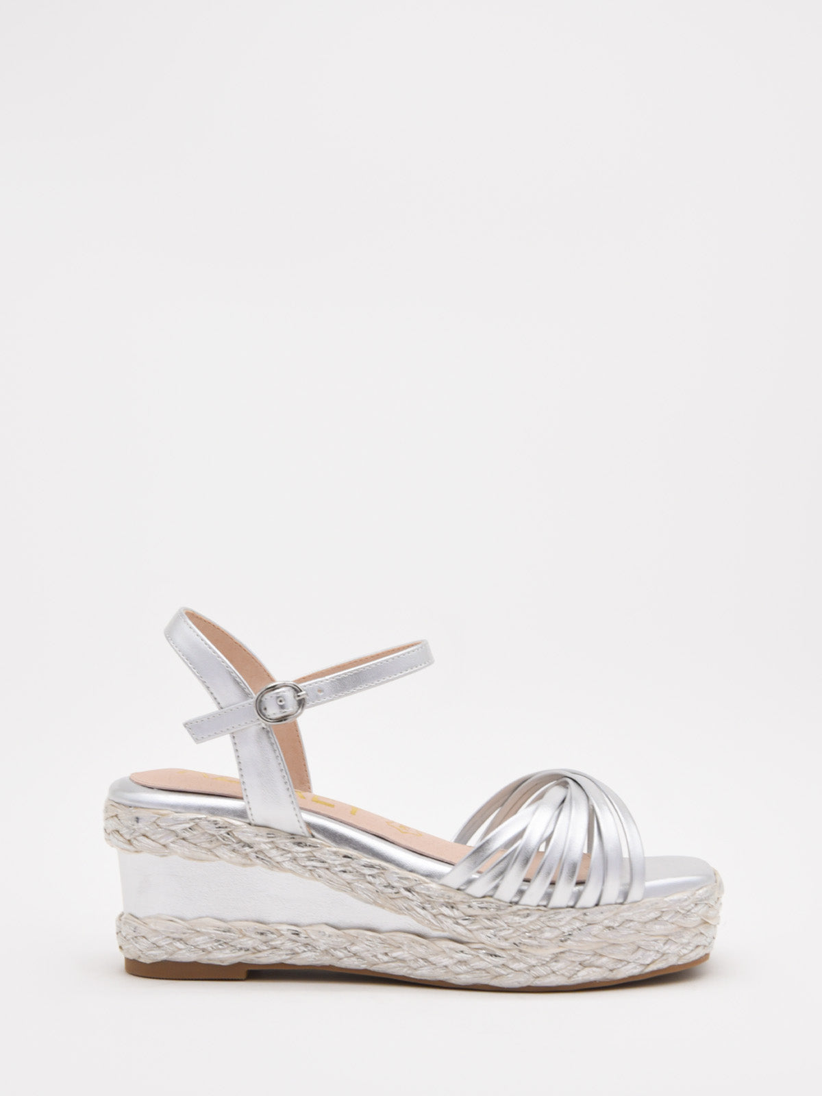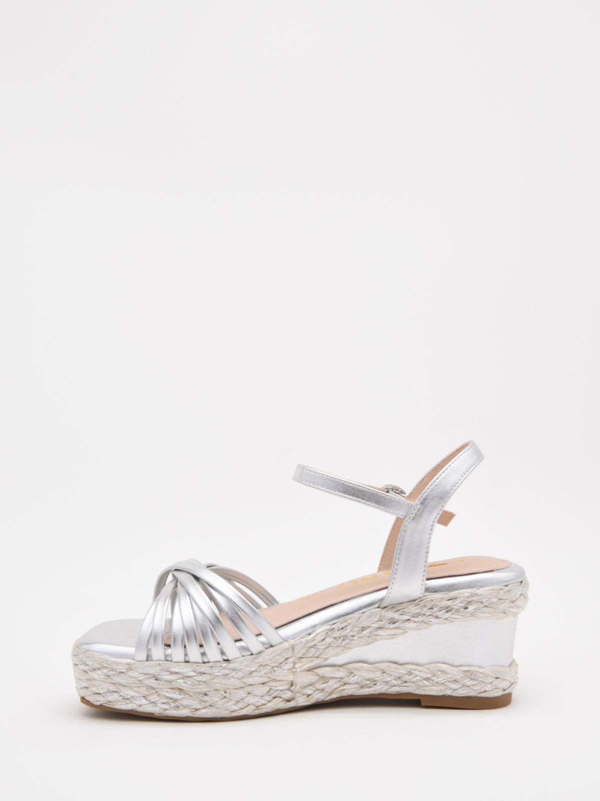 Sandalias de cuña plateadas con plataforma tejida y tiras elegantes