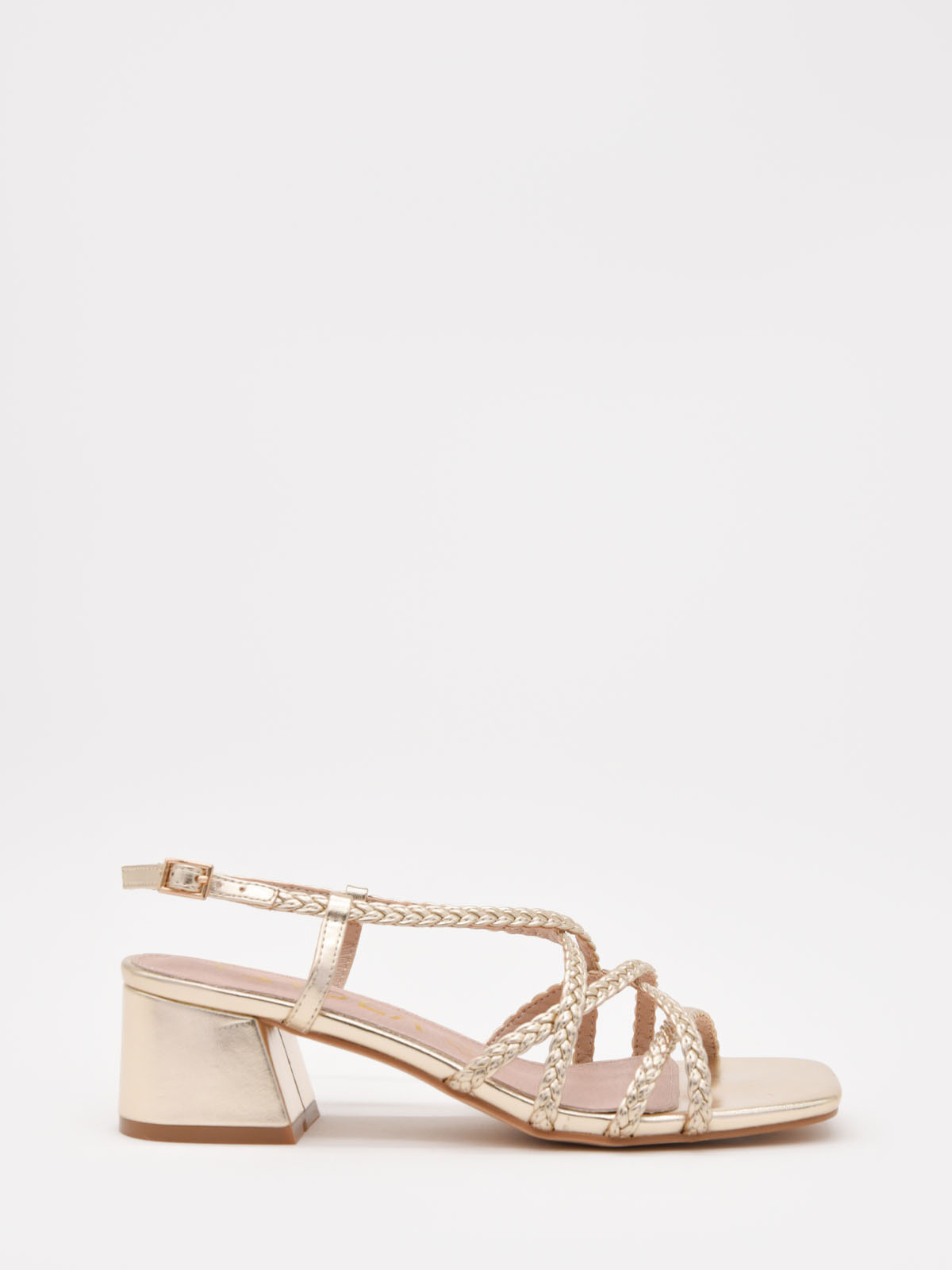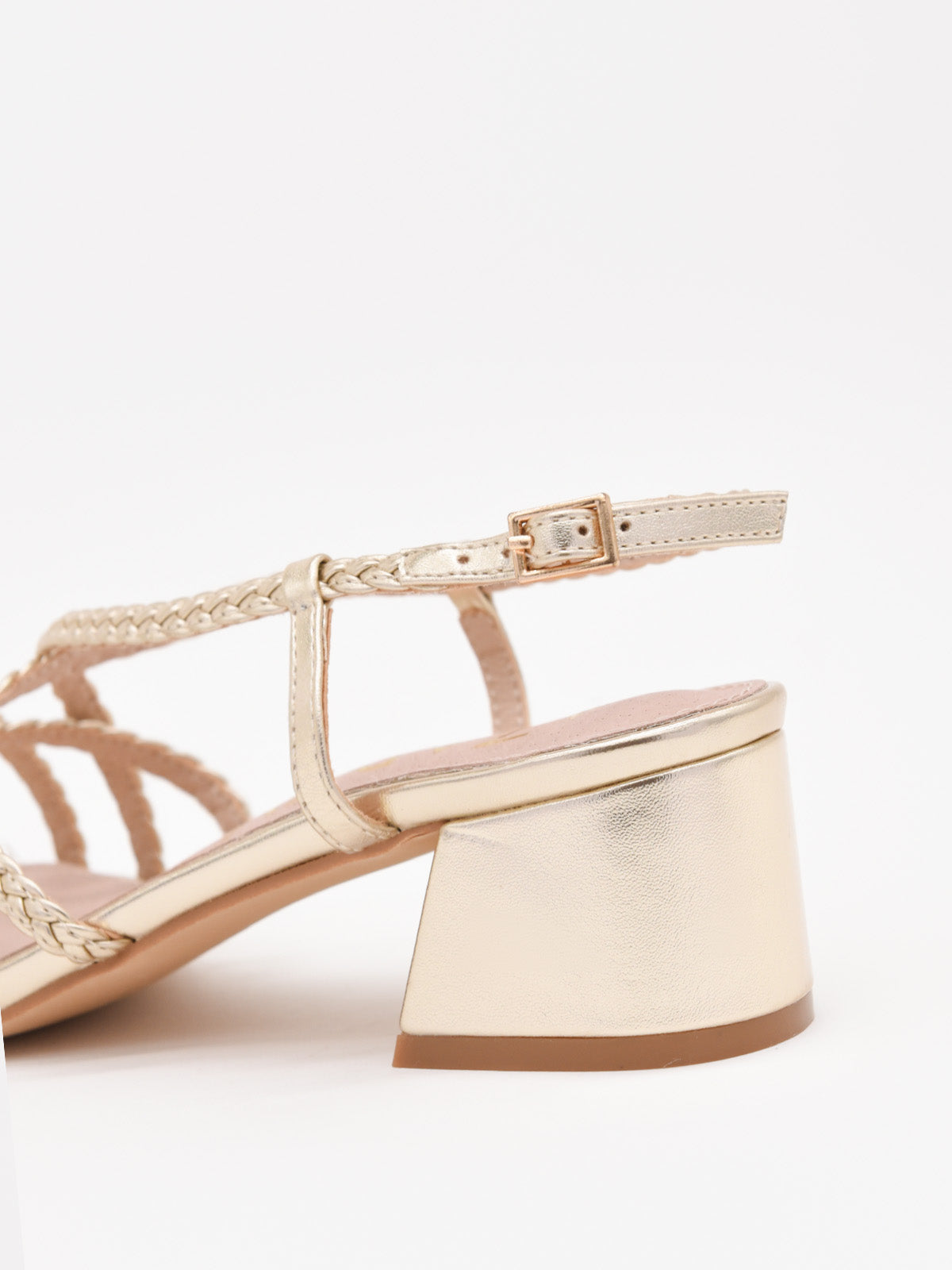 Estas sandalias doradas con tiras trenzadas son el complemento ideal para cualquier ocasión. Su diseño delicado y elegante resalta la belleza de tus pies, mientras que el tacón medio cuadrado ofrece estabilidad y comodidad durante todo el día. Perfectas para eventos especiales o para elevar tu estilo diario, cuentan con un cierre ajustable que garantiza un ajuste perfecto. ¡Luce sofisticada y cómoda al mismo tiempo!