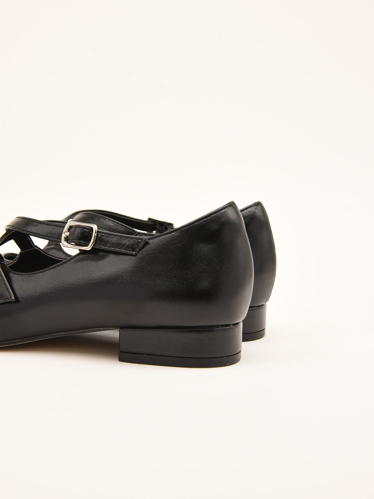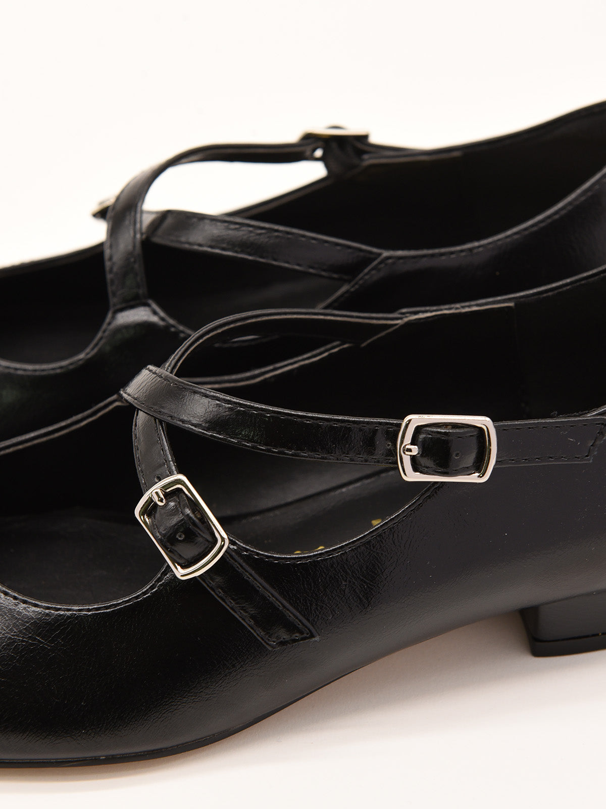 Luce sofisticada con estas bailarinas negras de charol, diseñadas con una elegante doble correa. Perfectas para combinar con cualquier atuendo, ofrecen un toque de distinción y comodidad en cada paso.