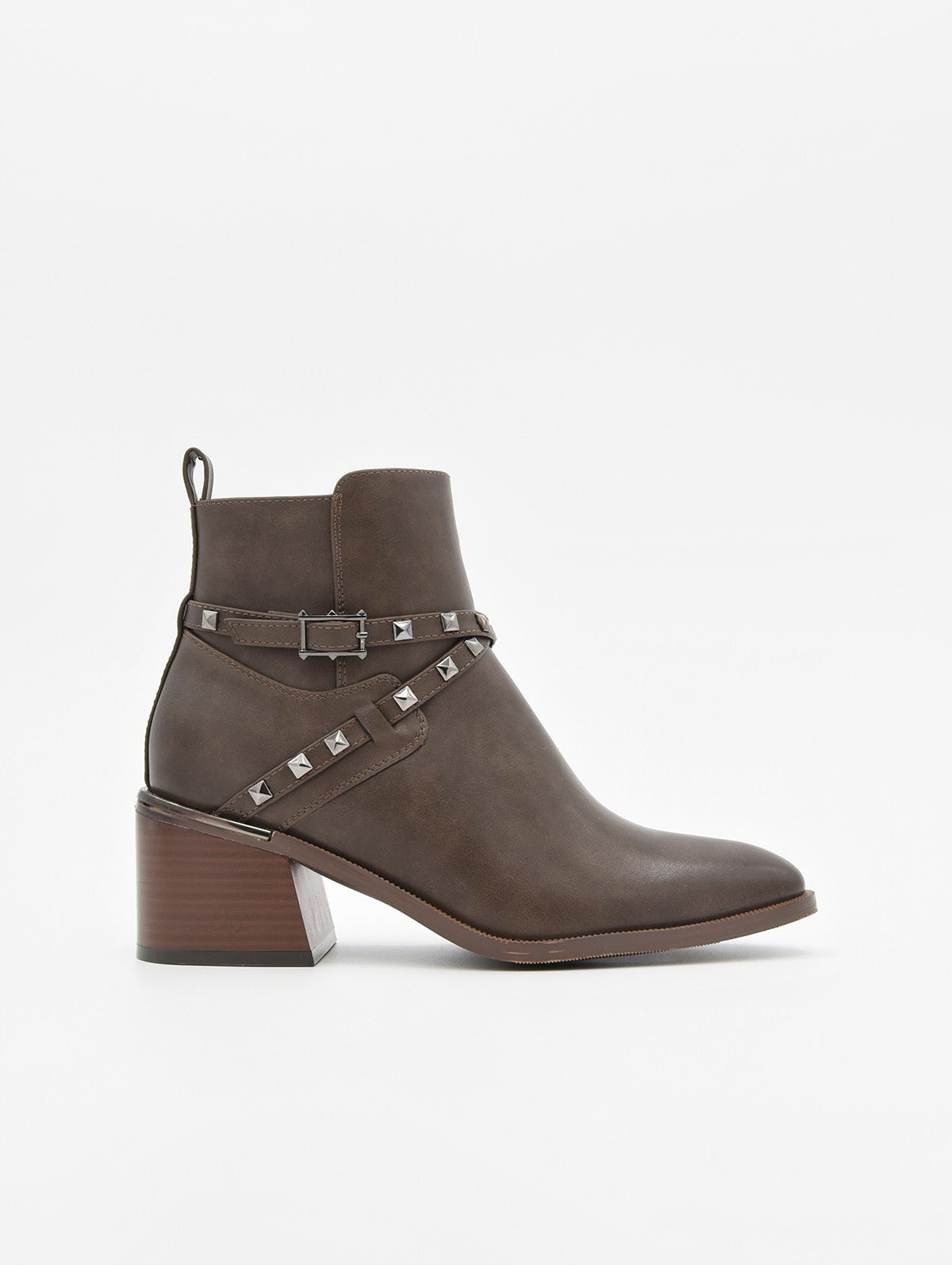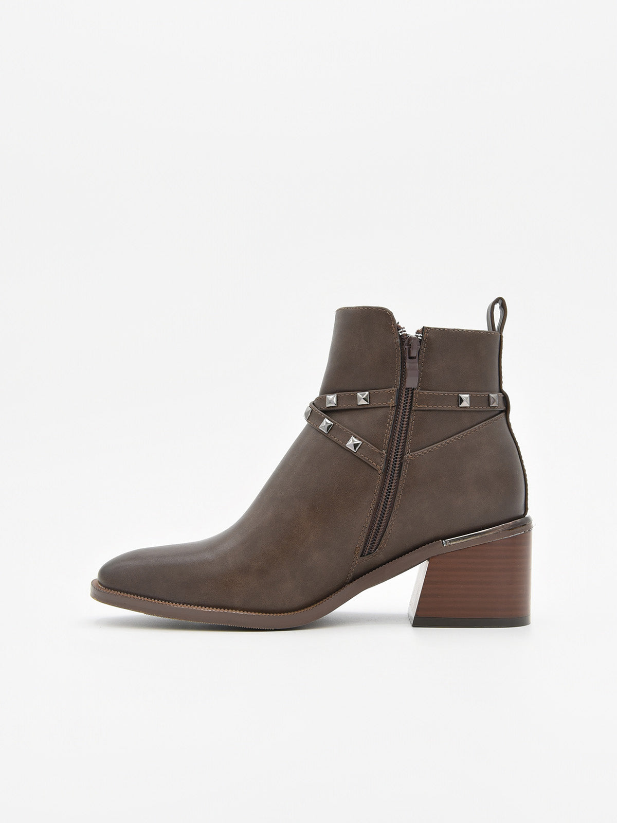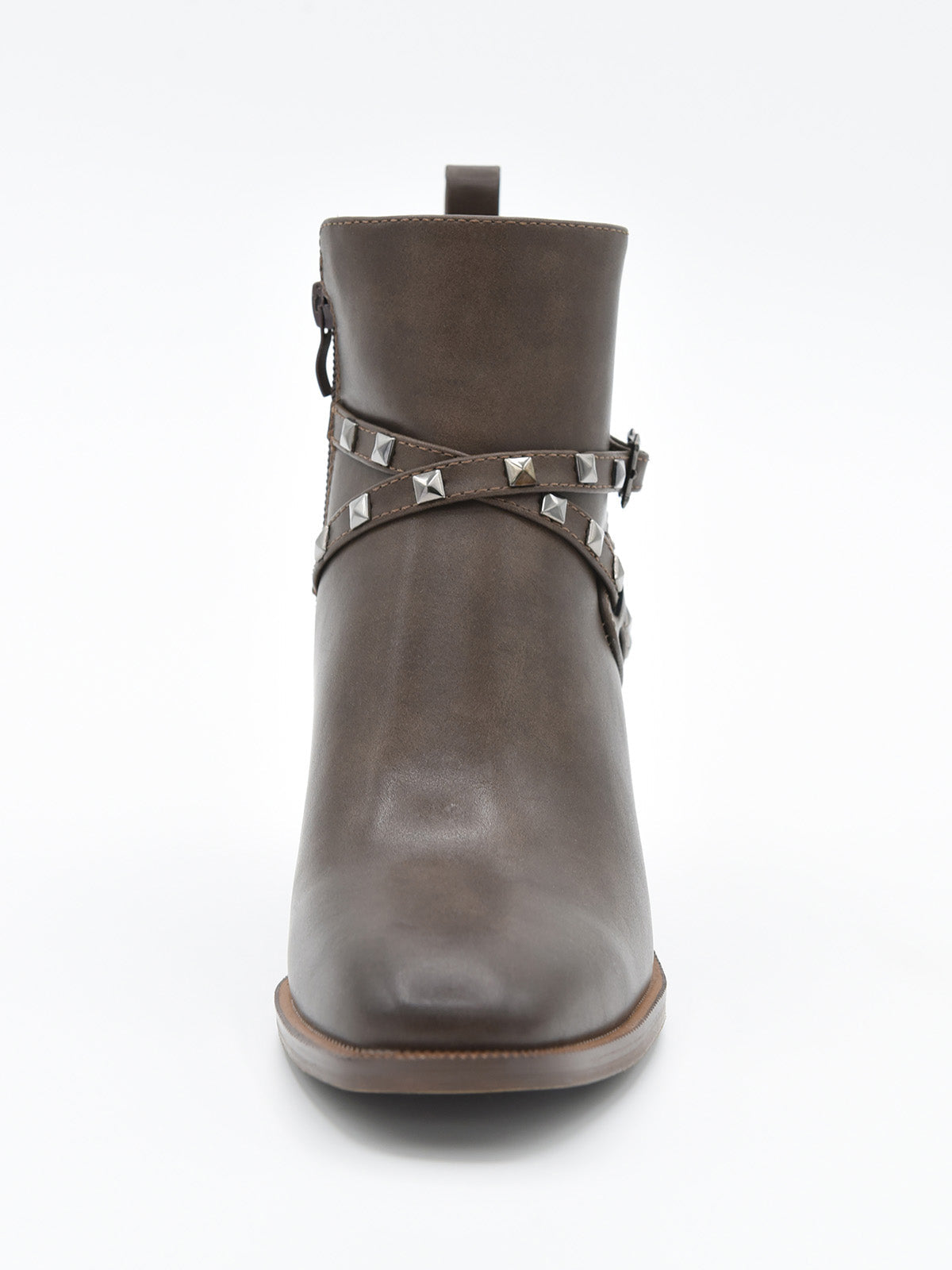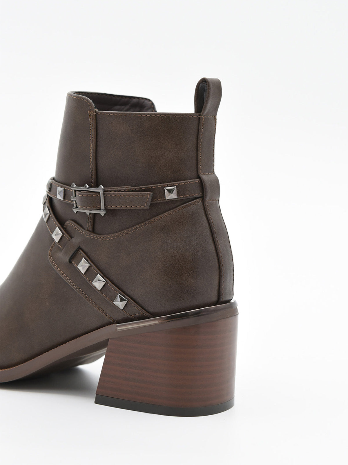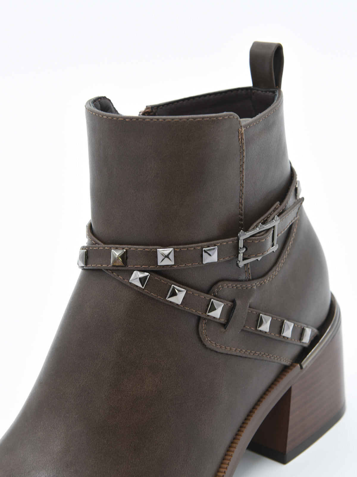 Botín marrón con tachuelas y tacón ancho de Nyrex