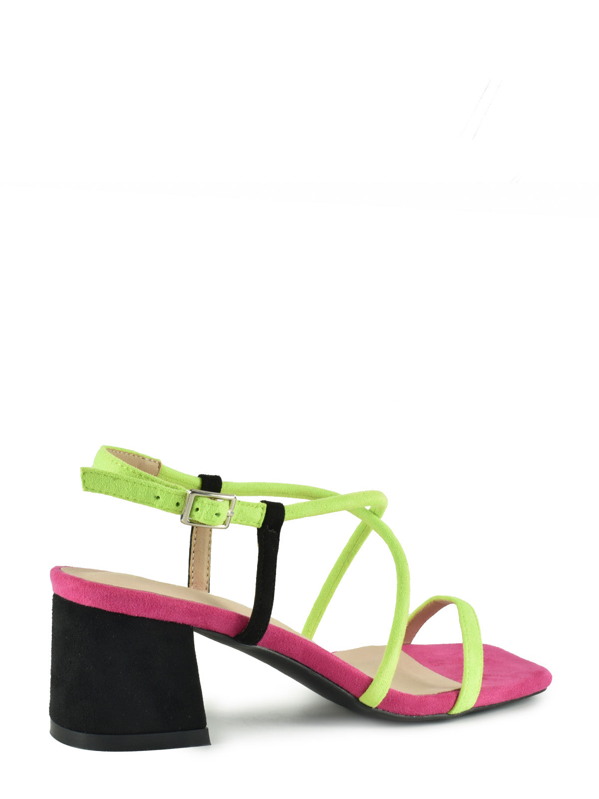 Sandalia buganvilla multicolor de tiras con tacón bajo