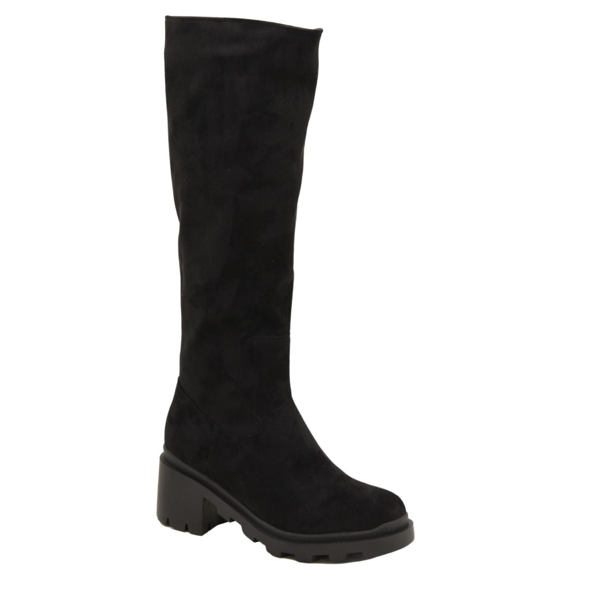 BOTA NEGRA ALTA CON TACÓN BLOQUE Y SUELA TRACK