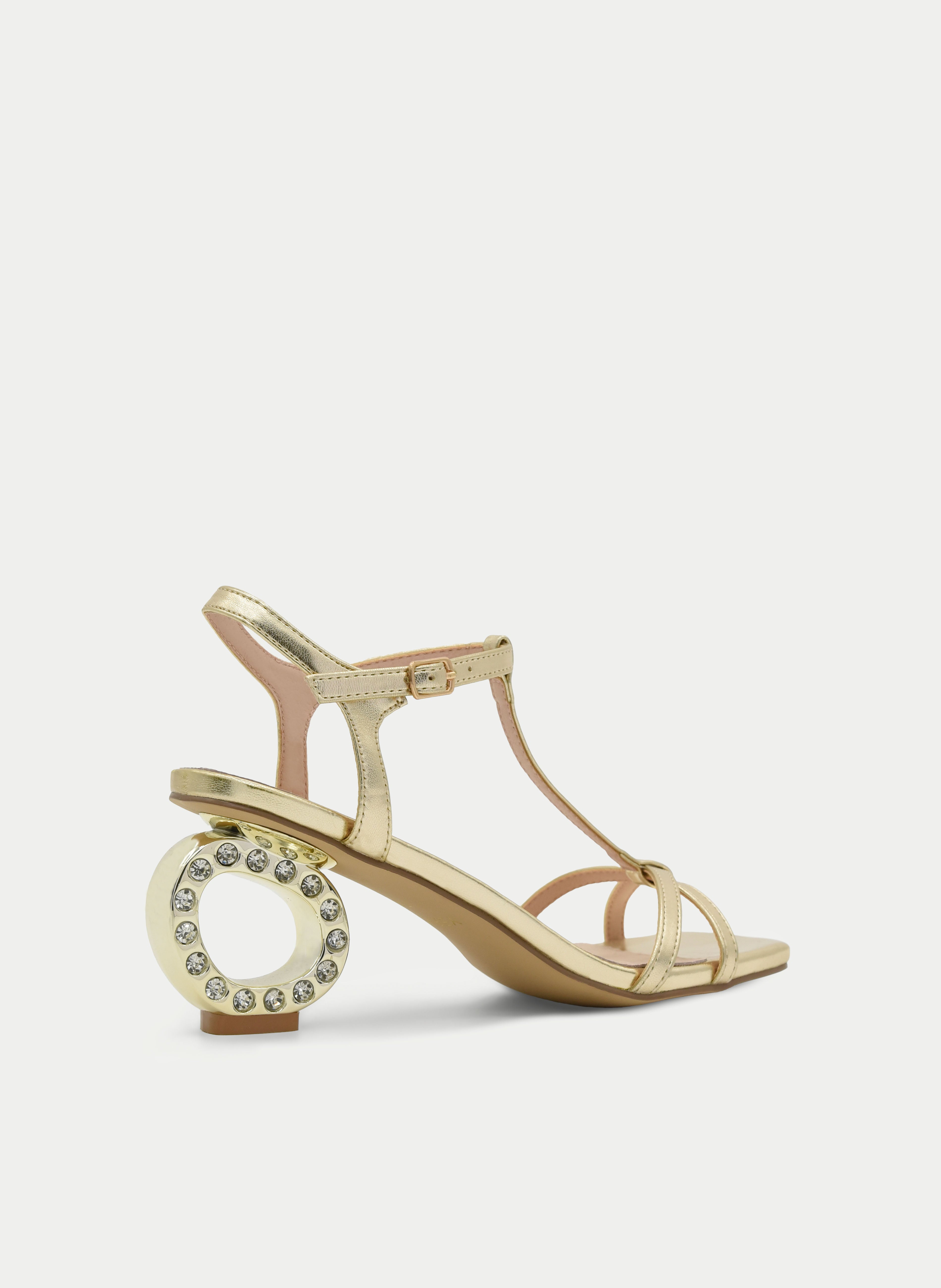 Estas sandalias doradas combinan elegancia y originalidad, convirtiéndose en el complemento ideal para tus looks más especiales. Destacan por su tacón bajo circular con detalles de cristales, que añade un toque sofisticado y único. Las tiras finas metalizadas estilizan el pie, mientras que la sujeción en forma de T proporciona máxima estabilidad y comodidad. Perfectas para bodas, eventos o cualquier ocasión especial en la que quieras destacar sin renunciar al confort. Con estas sandalias de fiesta, serás la invitada perfecta.