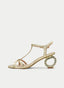 Sandalias doradas de tacón bajo con detalle de cristales