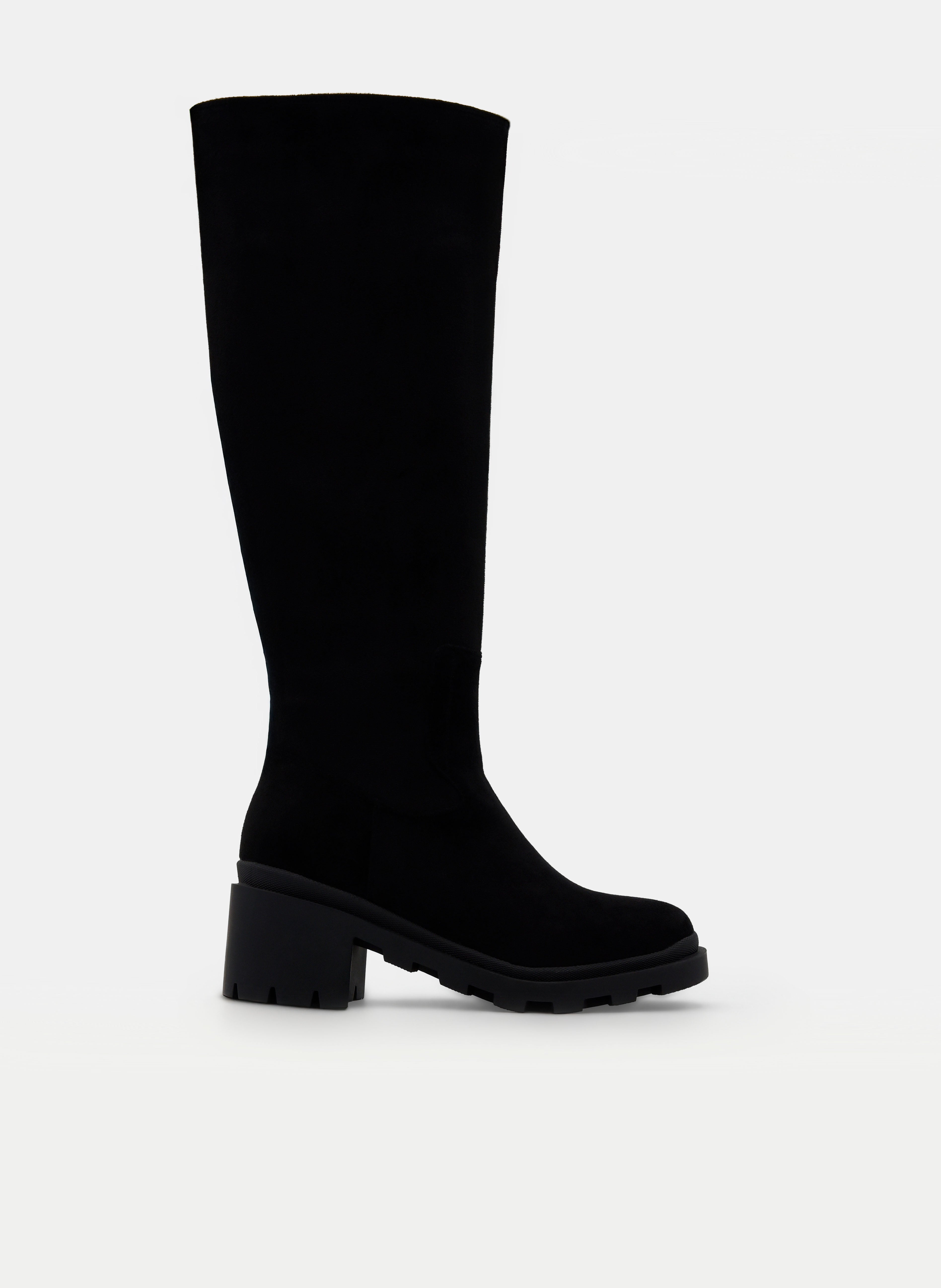 BOTA NEGRA ALTA CON TACÓN BLOQUE Y SUELA TRACK