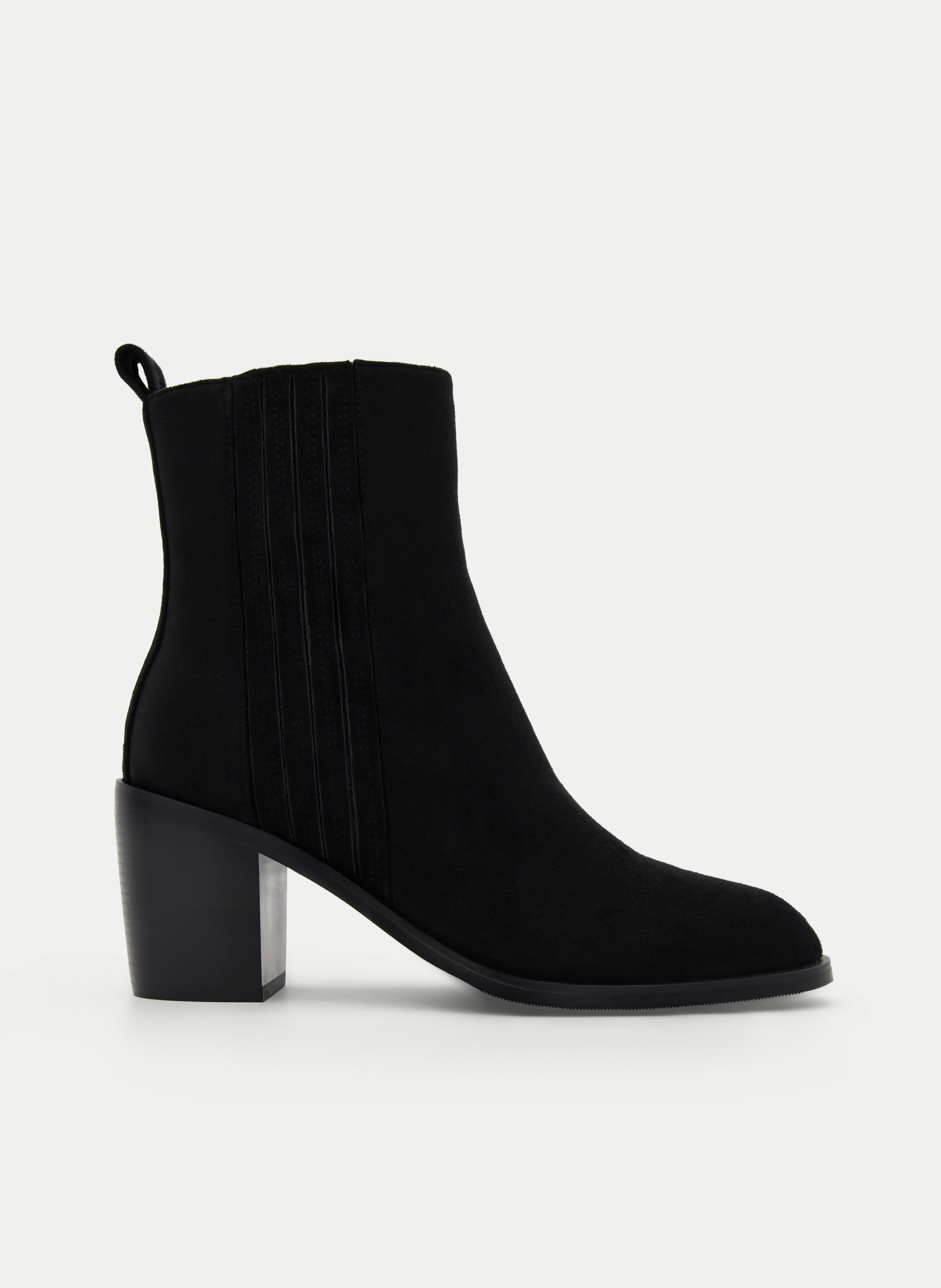 BOTINES NEGROS DE TACÓN ANCHO CON ELÁSTICOS LATERALES