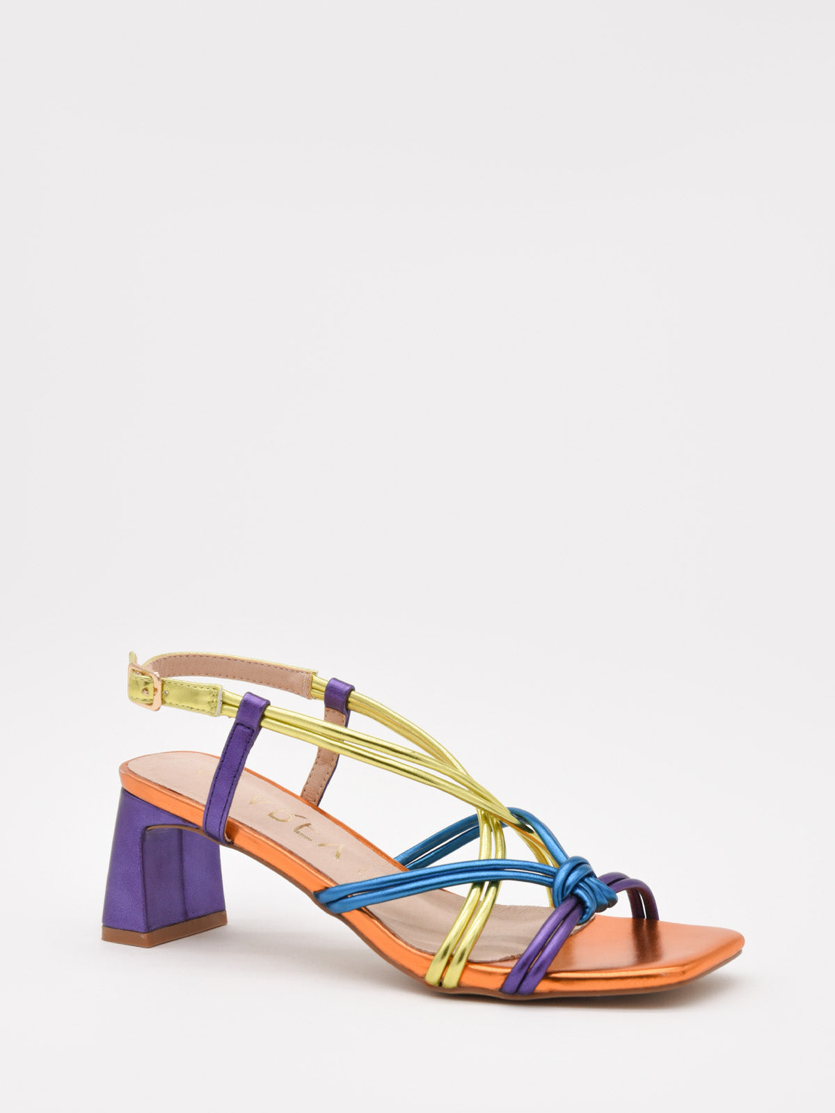 Sandalias de Tacón Bajo Multicolor con Tiras Metálicas