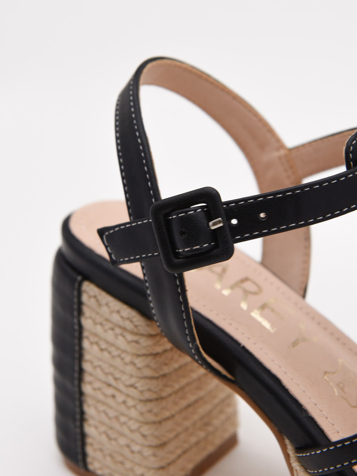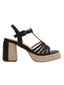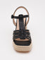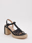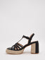 Sandalias de tacón negro con plataforma de yute
