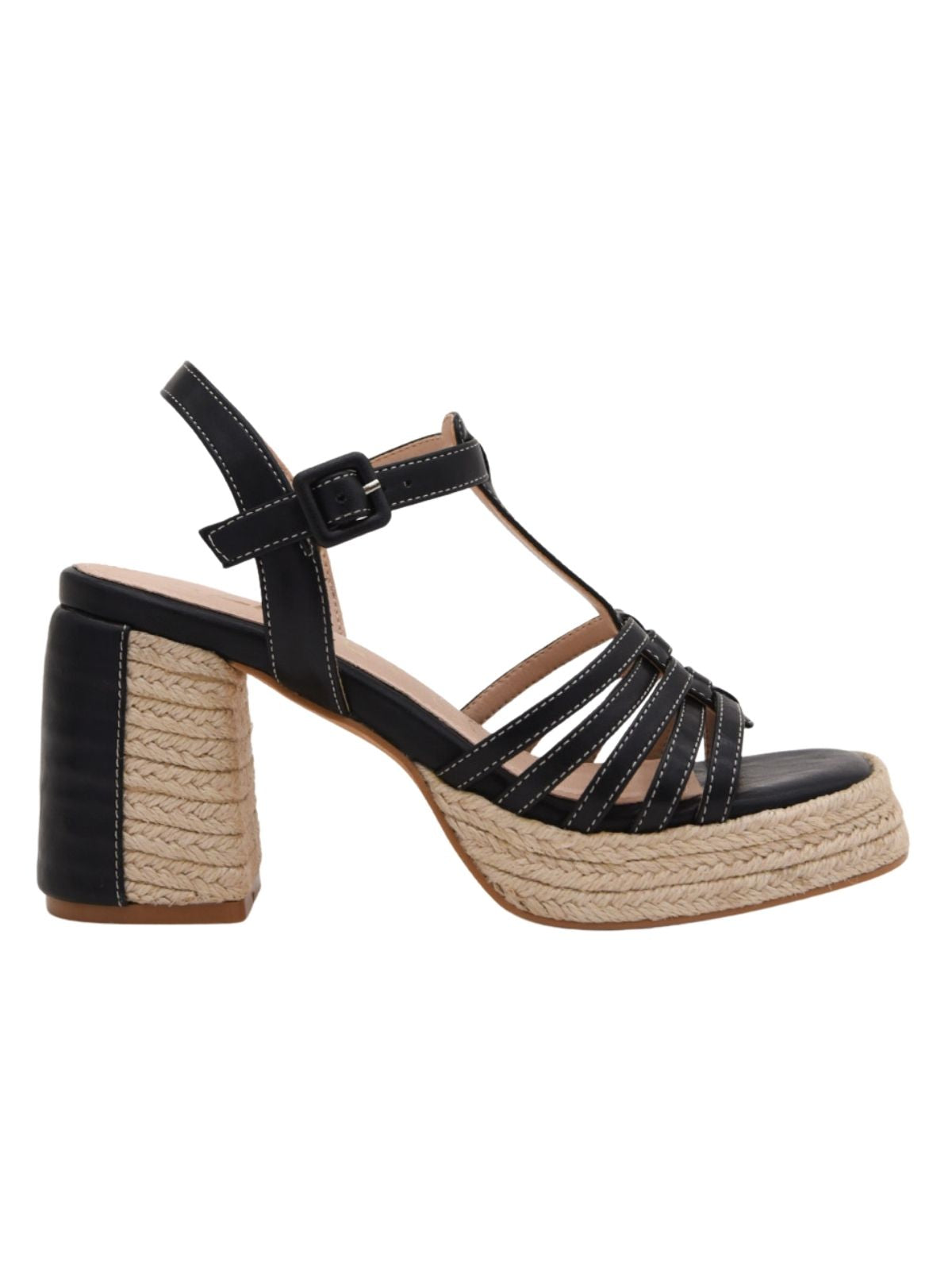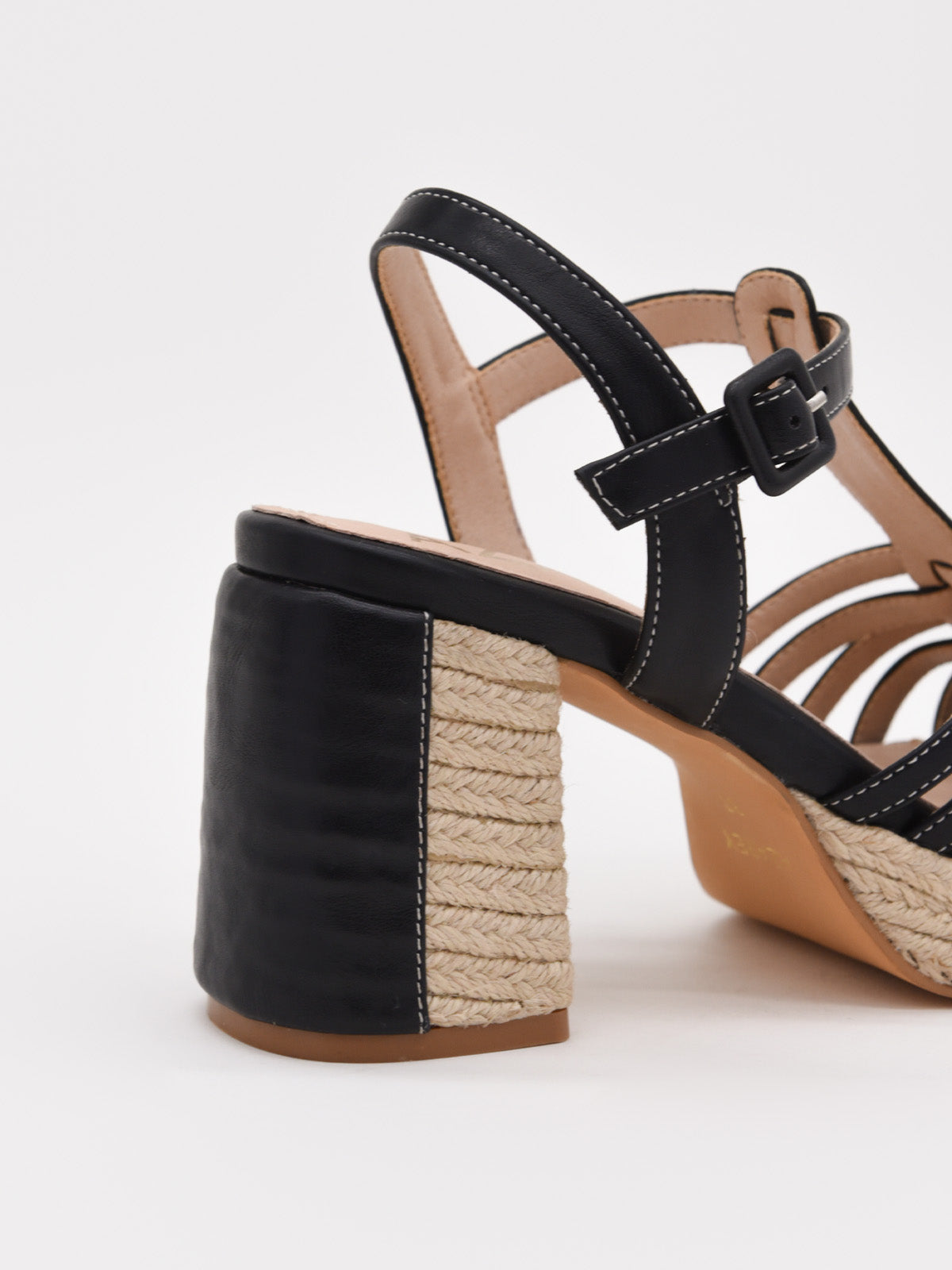 Estas sandalias de tacón negro combinan la elegancia clásica con un toque natural gracias a su plataforma de yute trenzado. Sus tiras entrelazadas estilizan el pie, mientras que el tacón ancho proporciona estabilidad y comodidad. El cierre ajustable asegura un ajuste perfecto, ideal para largas jornadas o eventos especiales. Versátiles y sofisticadas, estas sandalias son perfectas para complementar cualquier look, desde conjuntos casuales hasta outfits más formales.