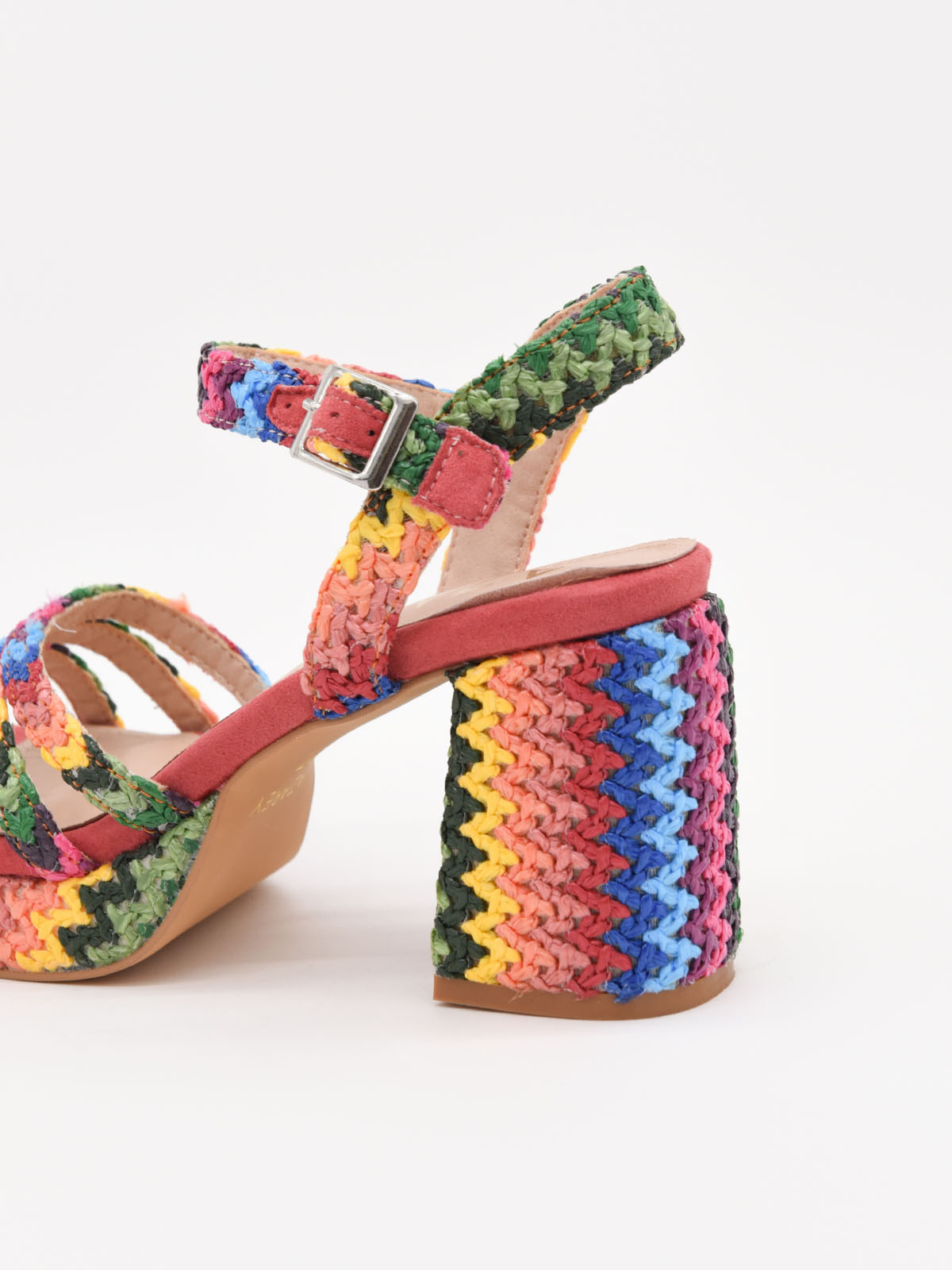 Estas sandalias de plataforma multicolor combinan un diseño artesanal tejido con un tacón ancho que asegura estabilidad y estilo. La plantilla acolchada y la correa ajustable ofrecen un ajuste cómodo, permitiéndote lucir espectacular sin renunciar al confort. Los tonos vivos y su acabado único las hacen perfectas para dar un toque alegre y sofisticado a cualquier outfit. Comodidad y diseño en cada paso.