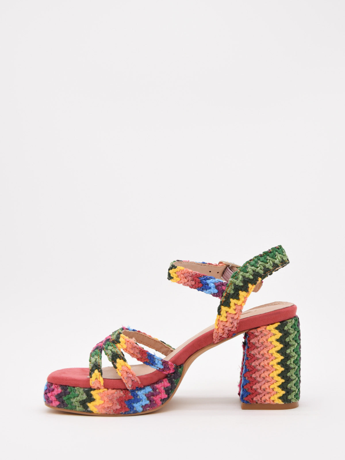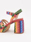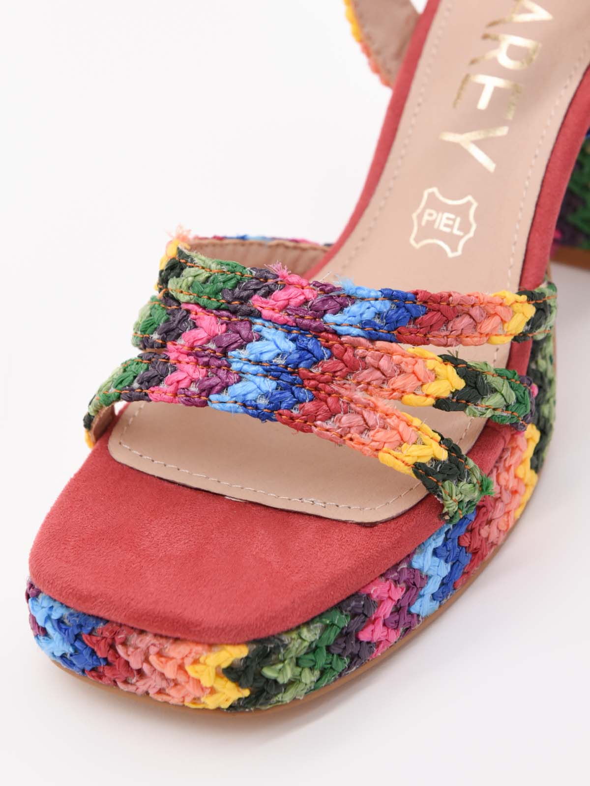 Sandalias de plataforma coral multicolor con diseño tejito