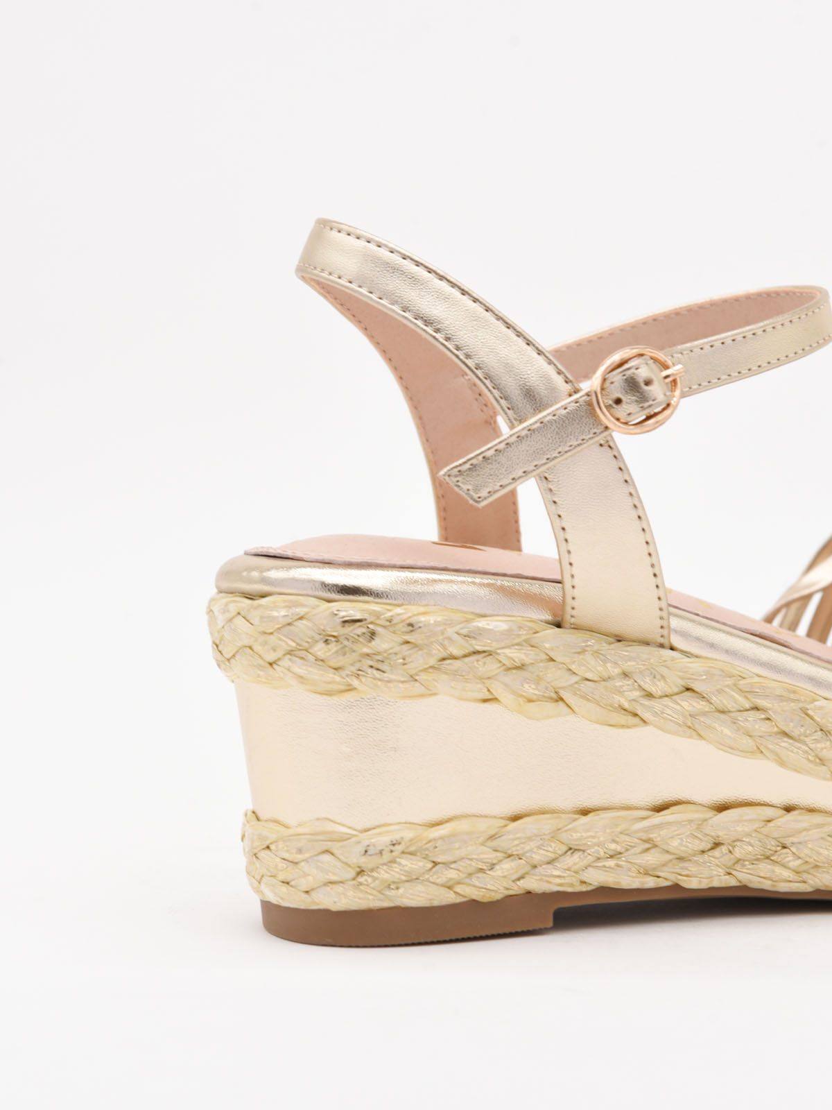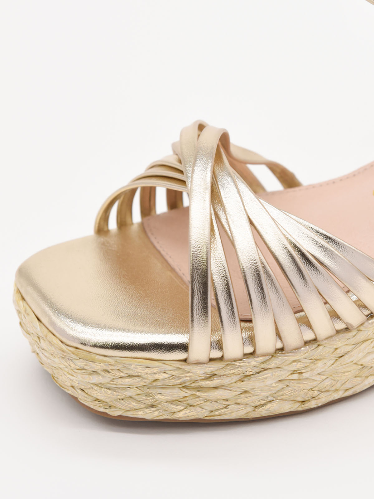Sandalias de cuña doradas con plataforma tejida