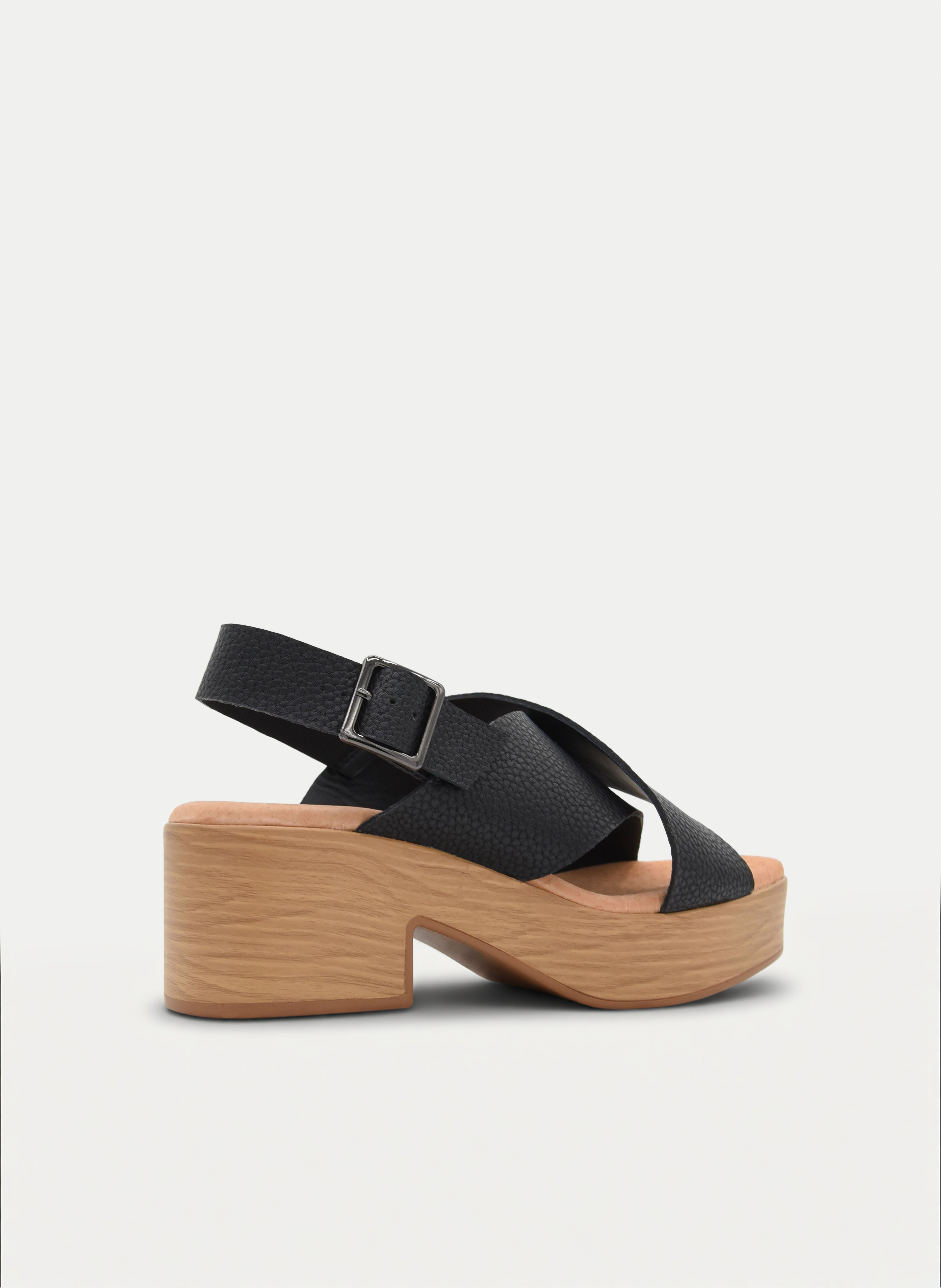 SANDALIAS DE TACÓN ANCHO NEGRAS DE PIEL