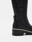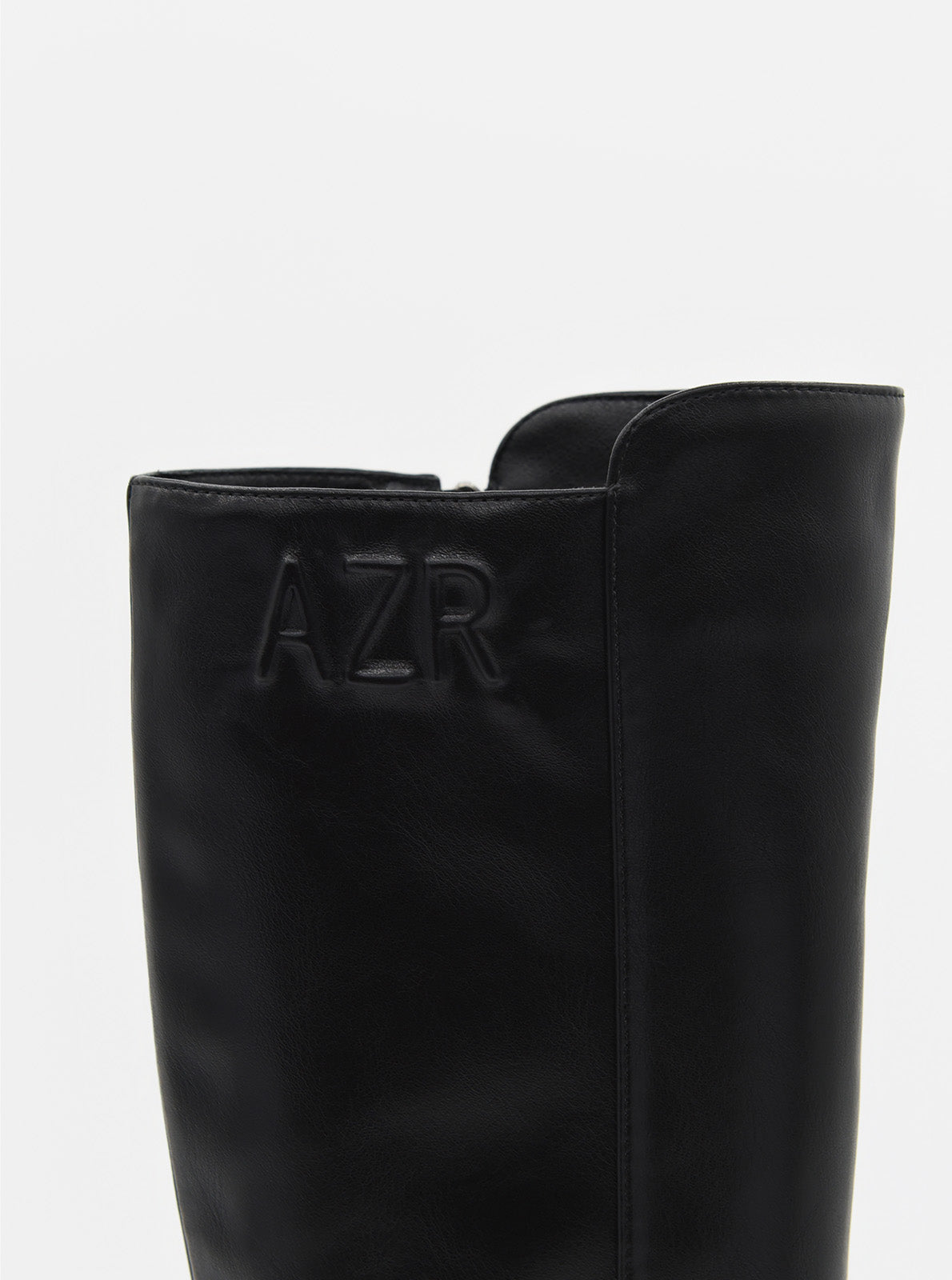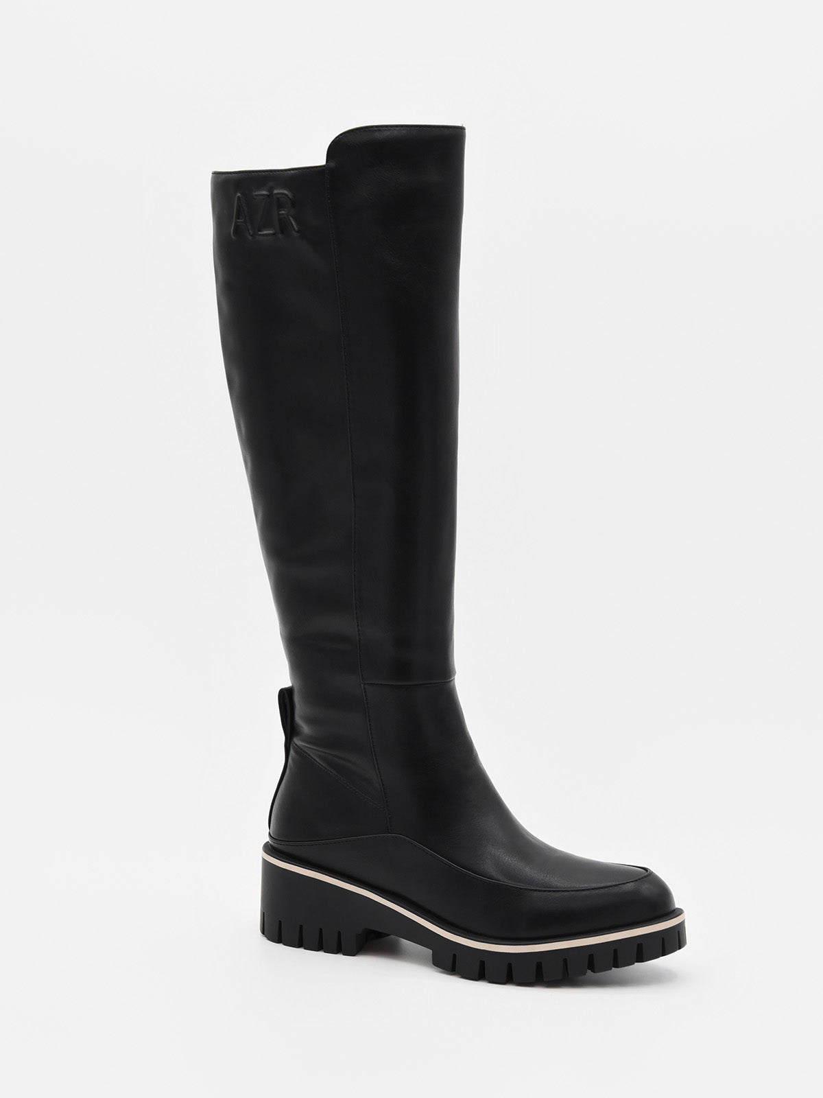 Descubre el poder de un básico con carácter. Esta bota negra alta de mujer con plataforma dentada es el complemento que transformará cualquier look urbano en una declaración de estilo. Fabricada en material vegano de alta calidad, su diseño sobrio y estructurado se realza con una elegante suela negra con detalle en contraste, y el sutil grabado del logo AZR en la caña, símbolo de identidad y sofisticación. La cremallera interior permite un calce cómodo y seguro, mientras que la suela chunky aporta altura y confort sin sacrificar estabilidad.
