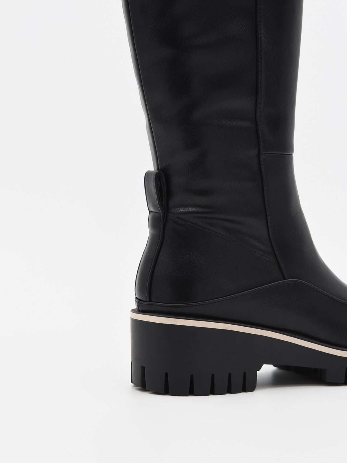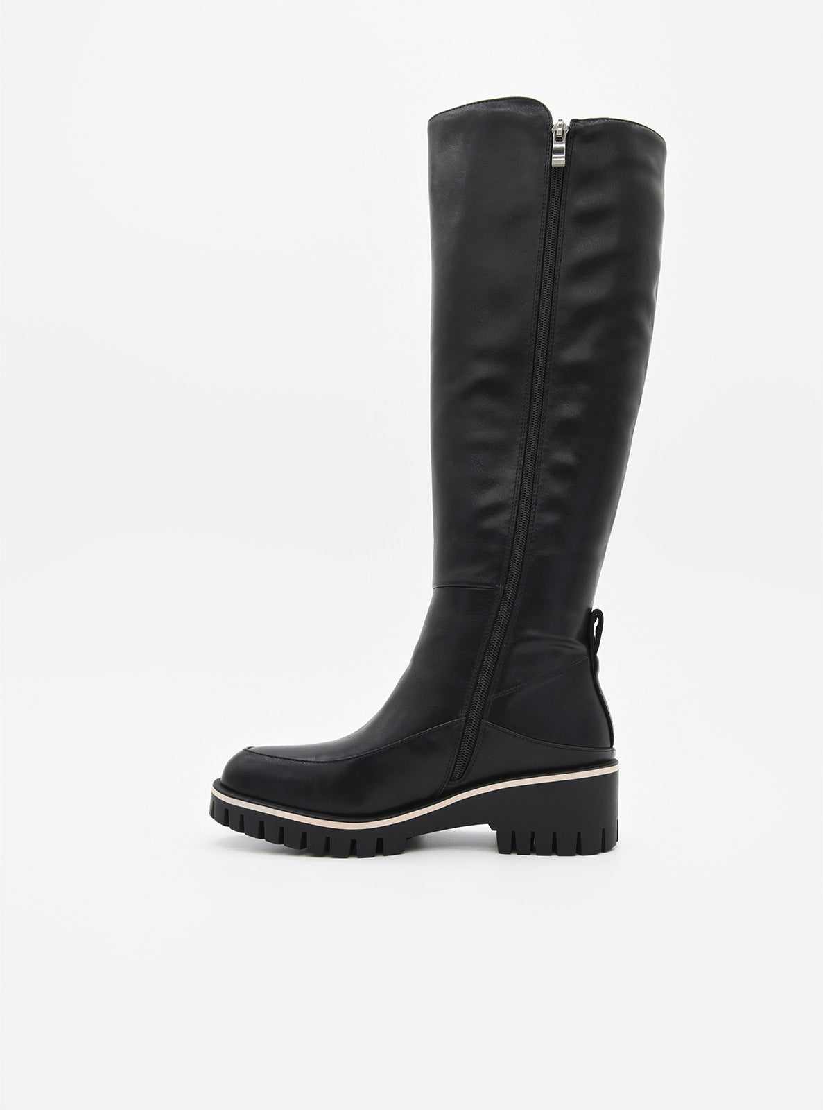 Esta bota de caña alta es ideal para looks de diario en temporada otoño-invierno. Llévala con vestidos midi de punto, leggings de polipiel o vaqueros ajustados para conseguir un efecto estilizador inmediato. Aporta fuerza a un outfit minimal o combínala con prendas oversized para un look effortless muy tendencia.