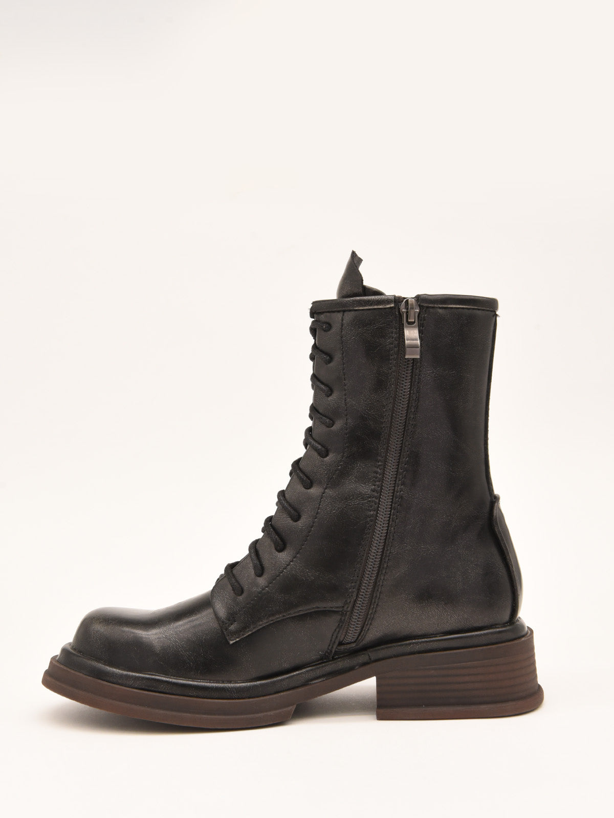 Botines Moteros de Cuero Gris con cordones