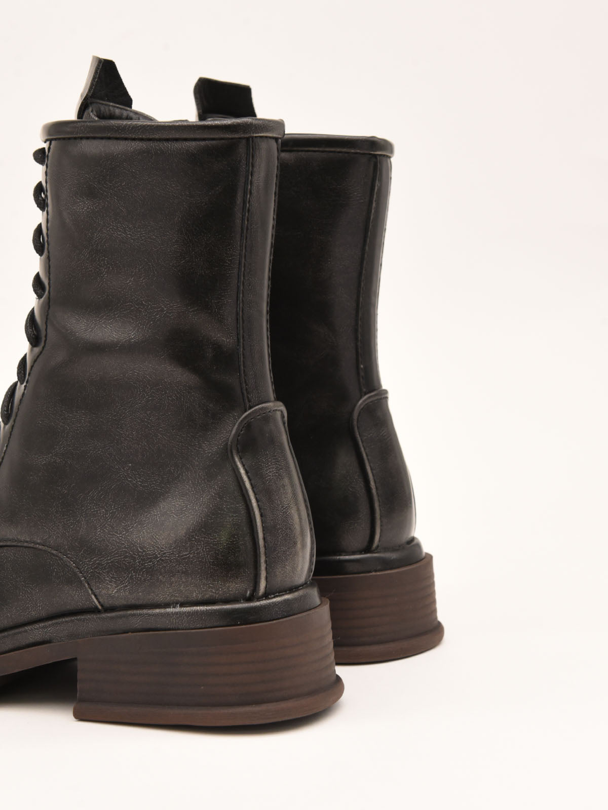 Estos botines de cuero gris combinan estilo y funcionalidad. Con cordones que ofrecen un ajuste cómodo y un diseño moderno. Perfectos para un look urbano y elegante, estos botines serán tu elección favorita para cualquier ocasión.