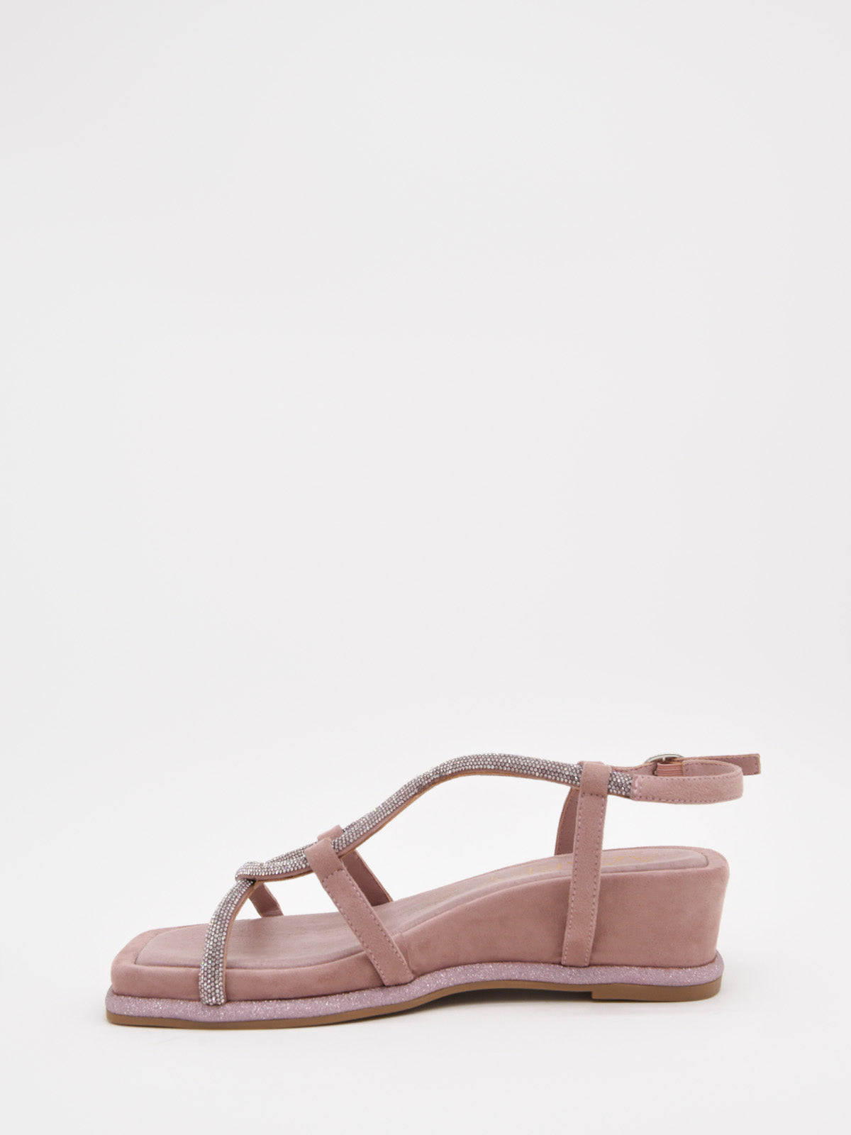 Dale un toque de delicadeza a tu calzado con estas sandalias planas rosa, diseñadas para ofrecer comodidad y estilo sofisticado. Sus tiras cruzadas decoradas con strass aportan un acabado elegante, mientras que la cuña sutil proporciona un ligero realce sin comprometer la comodidad. La plantilla acolchada asegura confort durante todo el día, y el cierre ajustable permite un ajuste perfecto. Ideales para ocasiones especiales o para elevar tus looks diarios con un toque glamuroso.