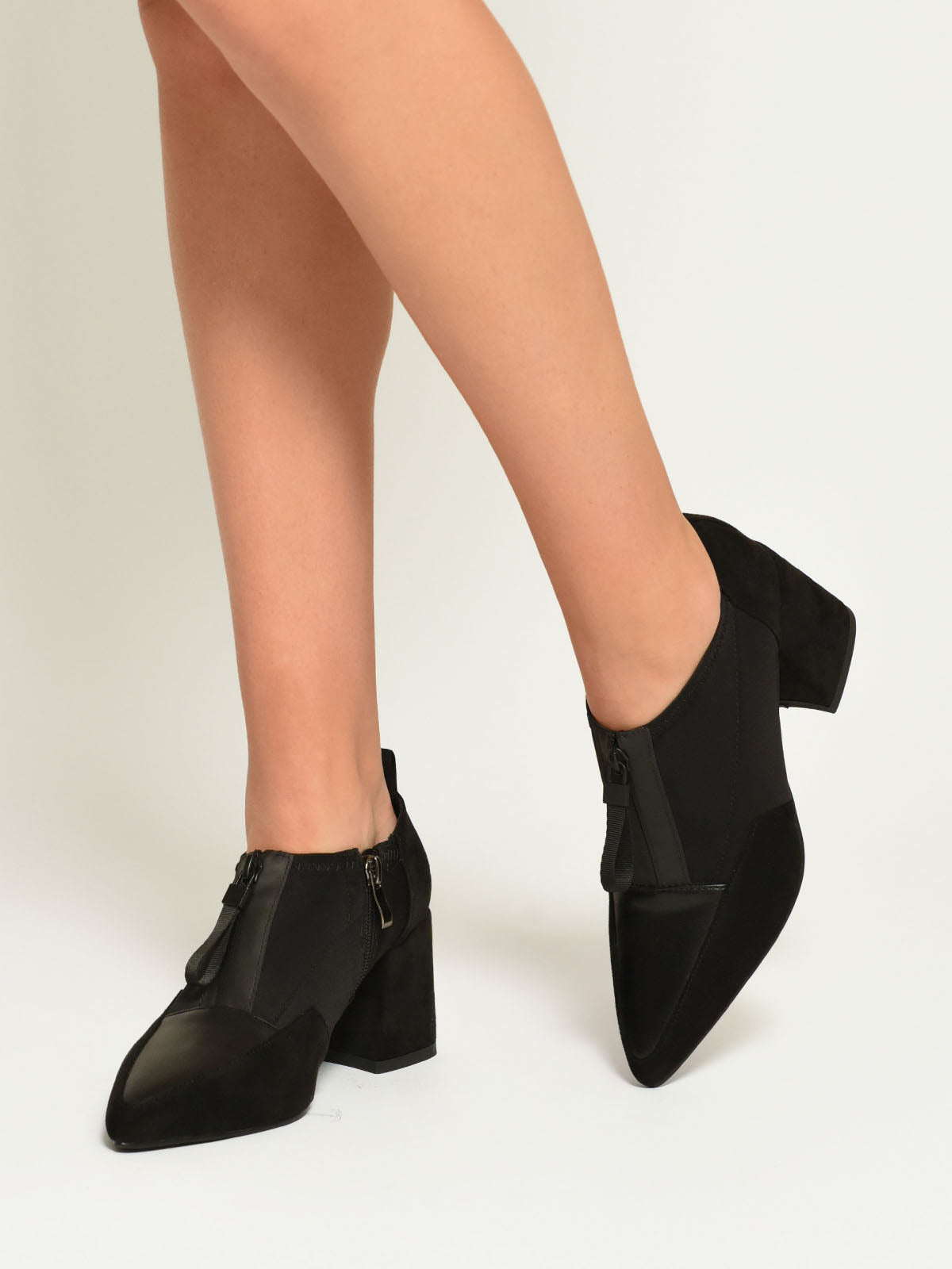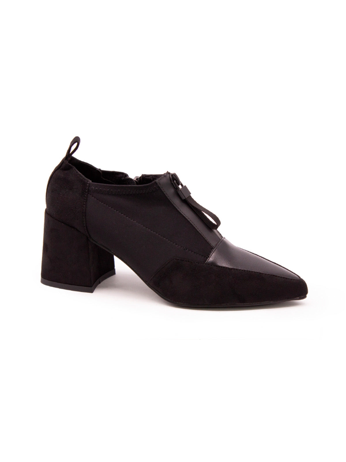 Aporta un toque de audacia a tu colección de calzado con nuestros zapatos negros de licra y tacón ancho. El diseño moderno con tacón grueso ofrece una mezcla perfecta de comodidad y estilo vanguardista. Ideales para añadir un punto focal a cualquier conjunto, estos botines son la definición de elegancia funcional.