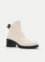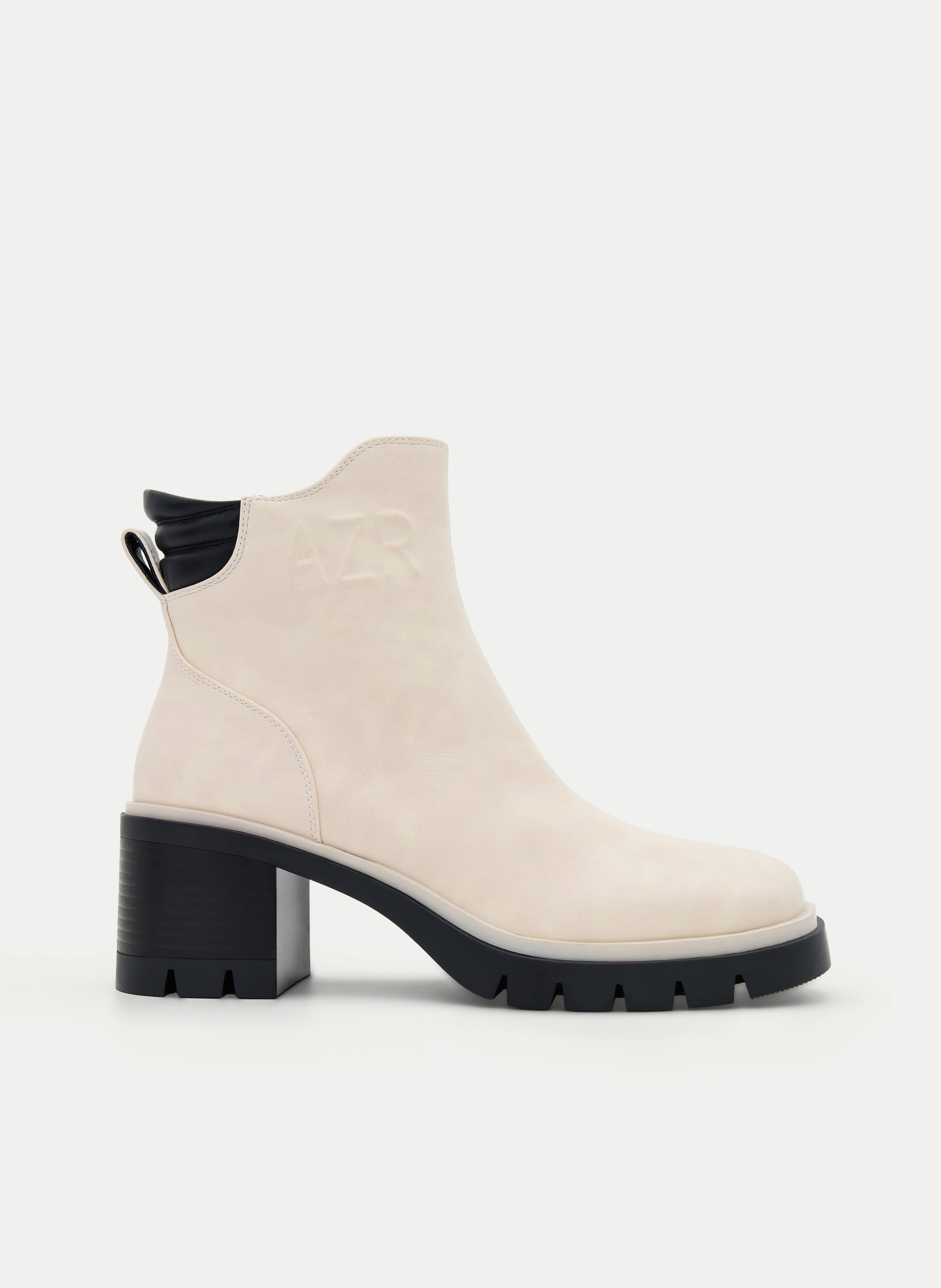 Estos botines beige combinan estilo minimalista con un toque urbano, perfectos para elevar tus looks de otoño e invierno. Su diseño limpio y sofisticado se complementa con una suela track dentada y un tacón ancho cómodo, elementos que aportan estabilidad y un aire actual ideal para el día a día. El detalle del logo en relieve en la caña añade ese toque distintivo y elegante propio de Azarey.