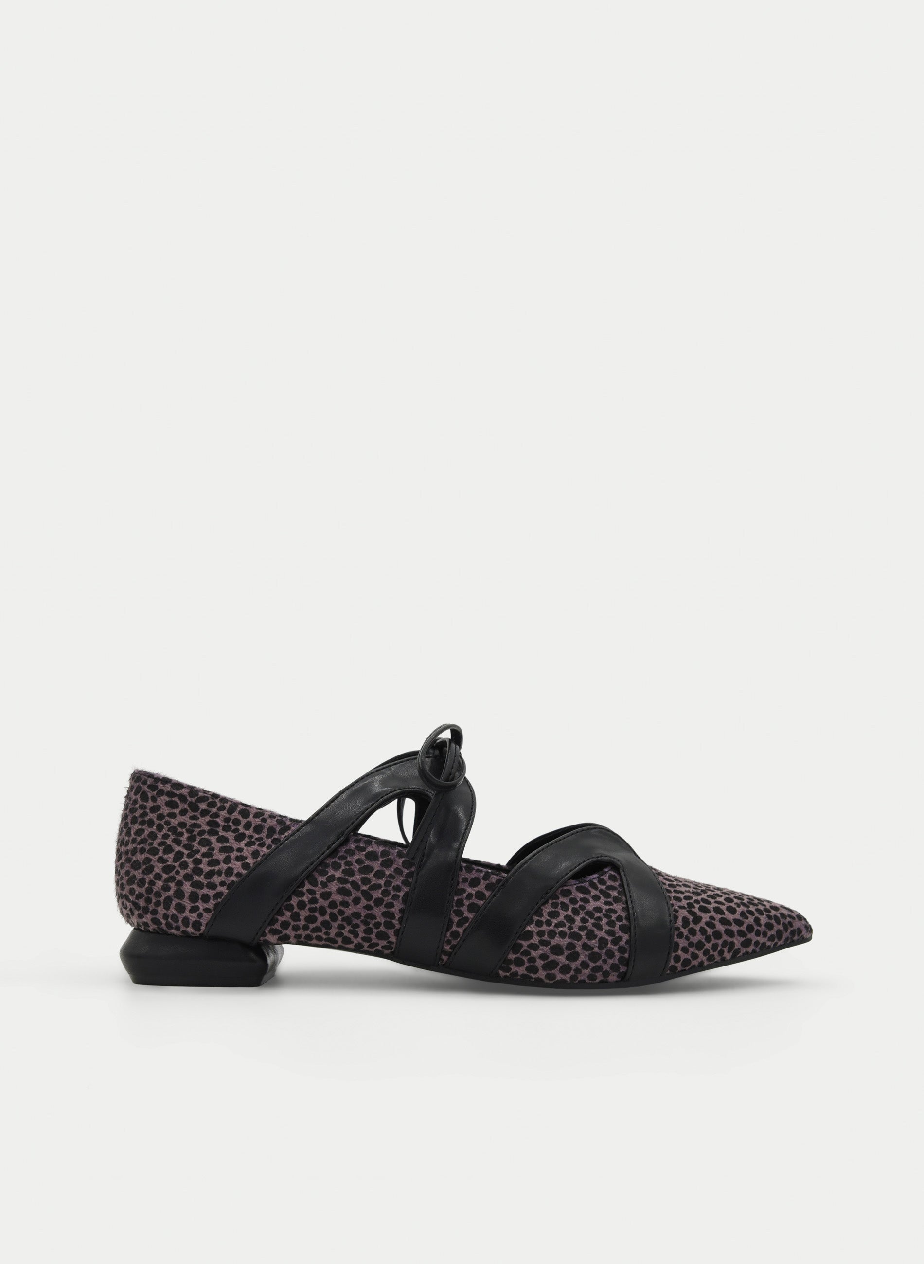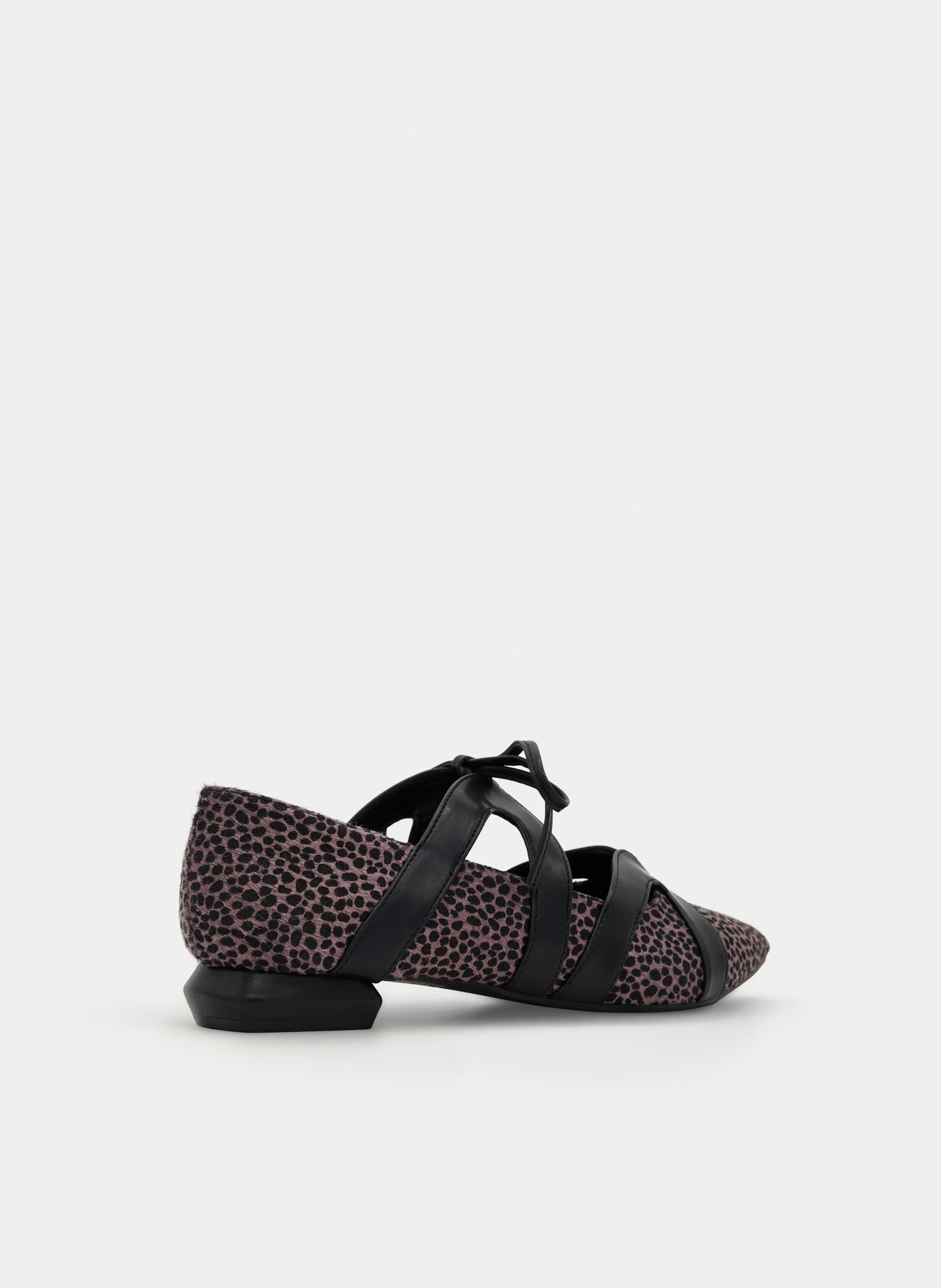 BAILARINA NEGRA Y MARRÓN ESTAMPADA CON PUNTA FINA Y LAZADA