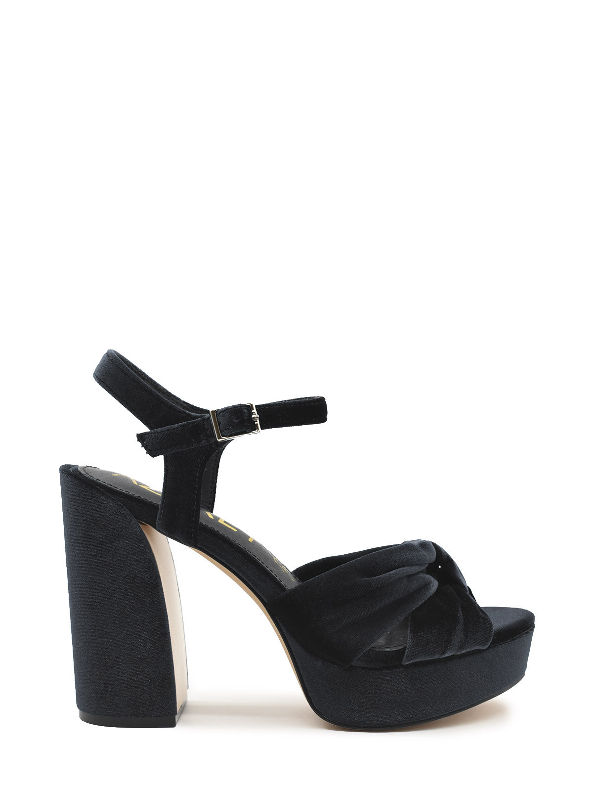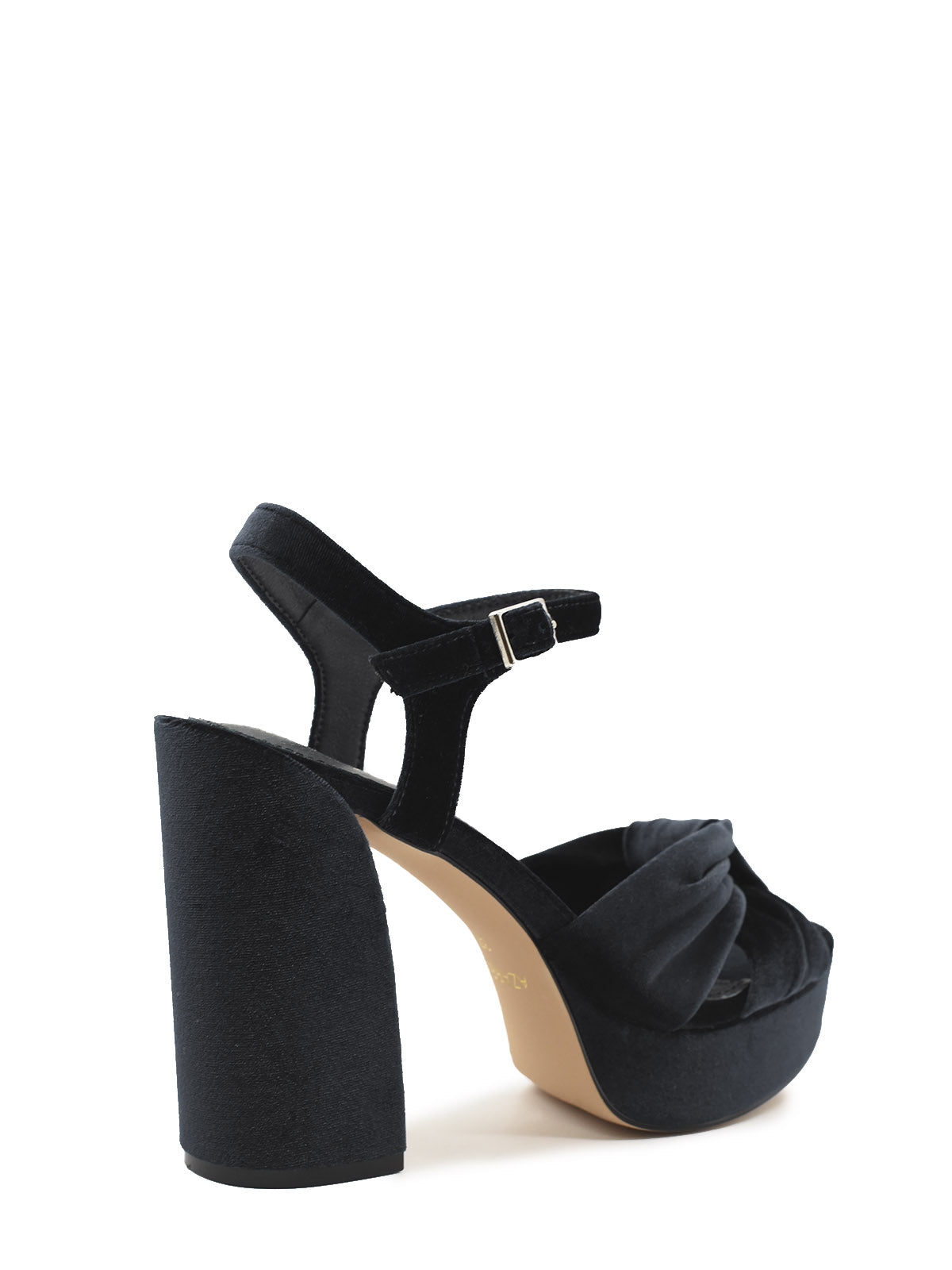 Brilla di più alla festa con questa unica sandalia nera in velluto con piattaforma. Fai innamorare gli altri della sofisticatezza del suo colore e della sua lussuosa texture in velluto questo inverno. Sii la regina della notte!