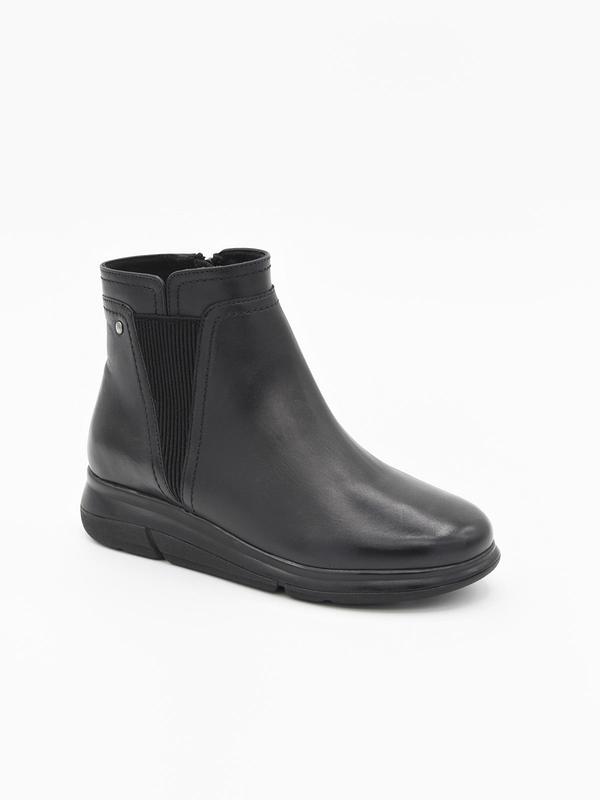 BOTÍN NEGRO DE PIEL CON ELÁSTICO LATERAL