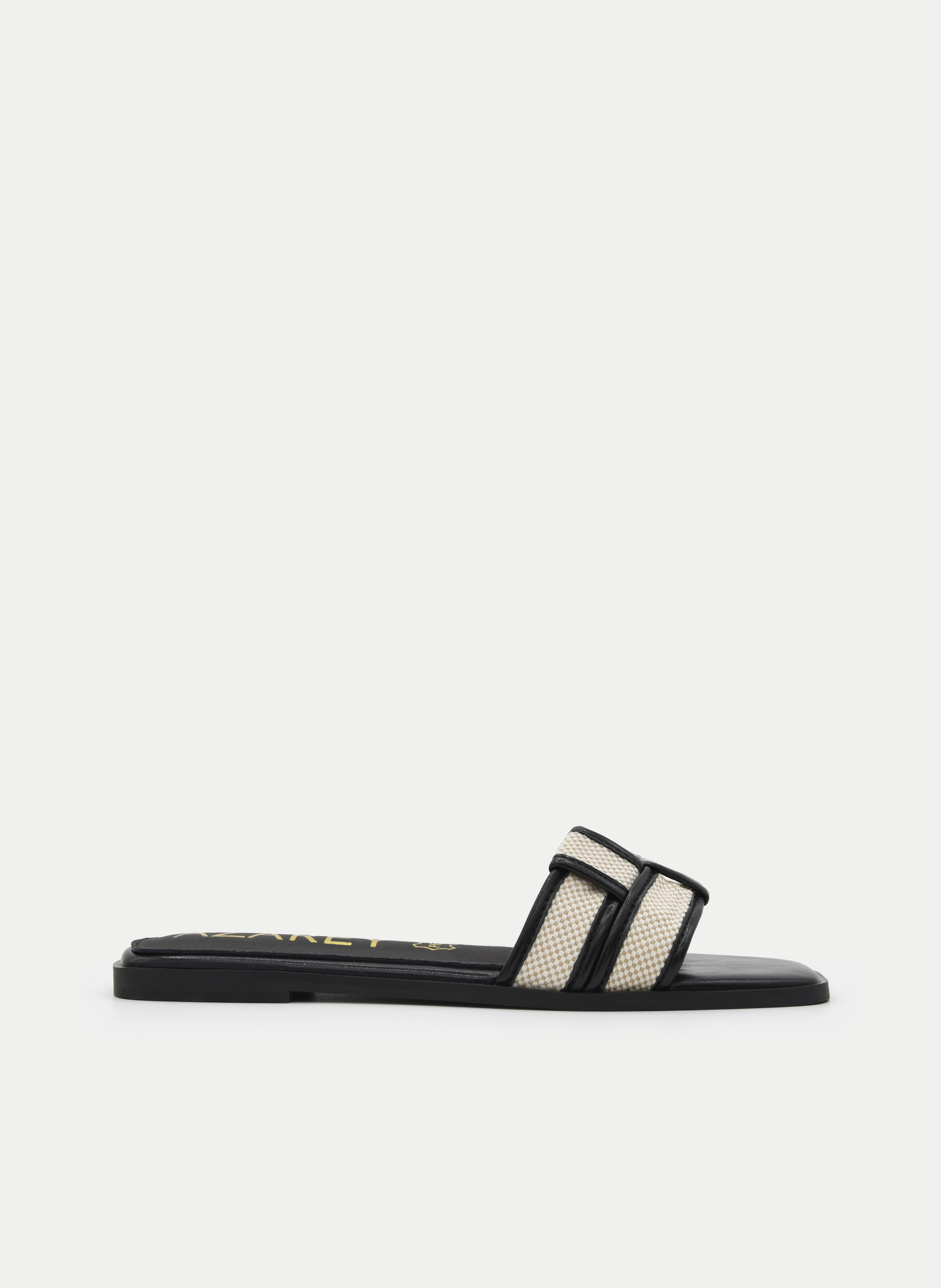 Minimalista e sofisticata, questa sandalo piatto nero si distingue per il suo design moderno ed elegante. Le sue cinturine sottili in tono argentato creano un contrasto attraente con la base nera, conferendo uno stile attuale e molto versatile.