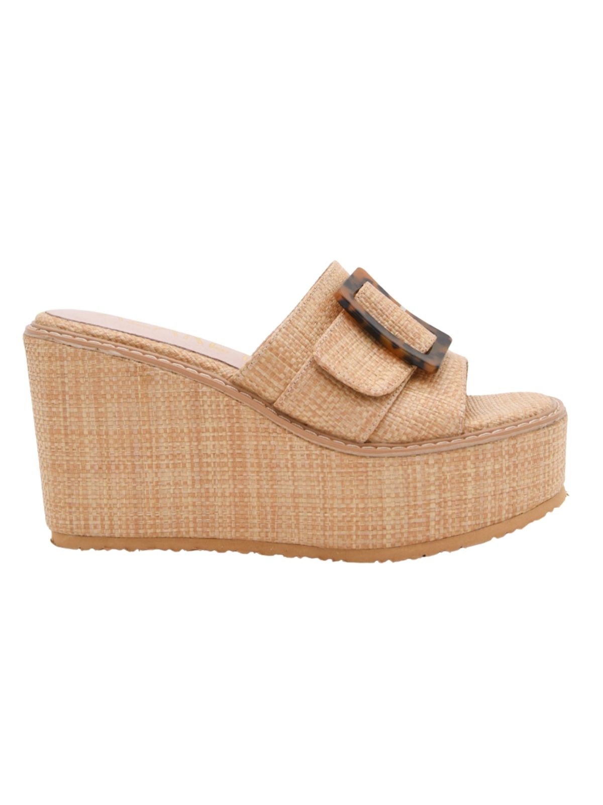 Descubre el equilibrio perfecto entre estilo y comodidad con estas sandalias de cuña beige. Su diseño en textura natural tejida aporta frescura y elegancia, ideal para cualquier ocasión. La hebilla decorativa de efecto carey añade un detalle sofisticado, mientras que la suela acolchada y la plataforma garantizan un soporte cómodo durante todo el día. Perfectas para combinar con vestidos veraniegos o looks casuales, estas sandalias serán tus favoritas de la temporada.