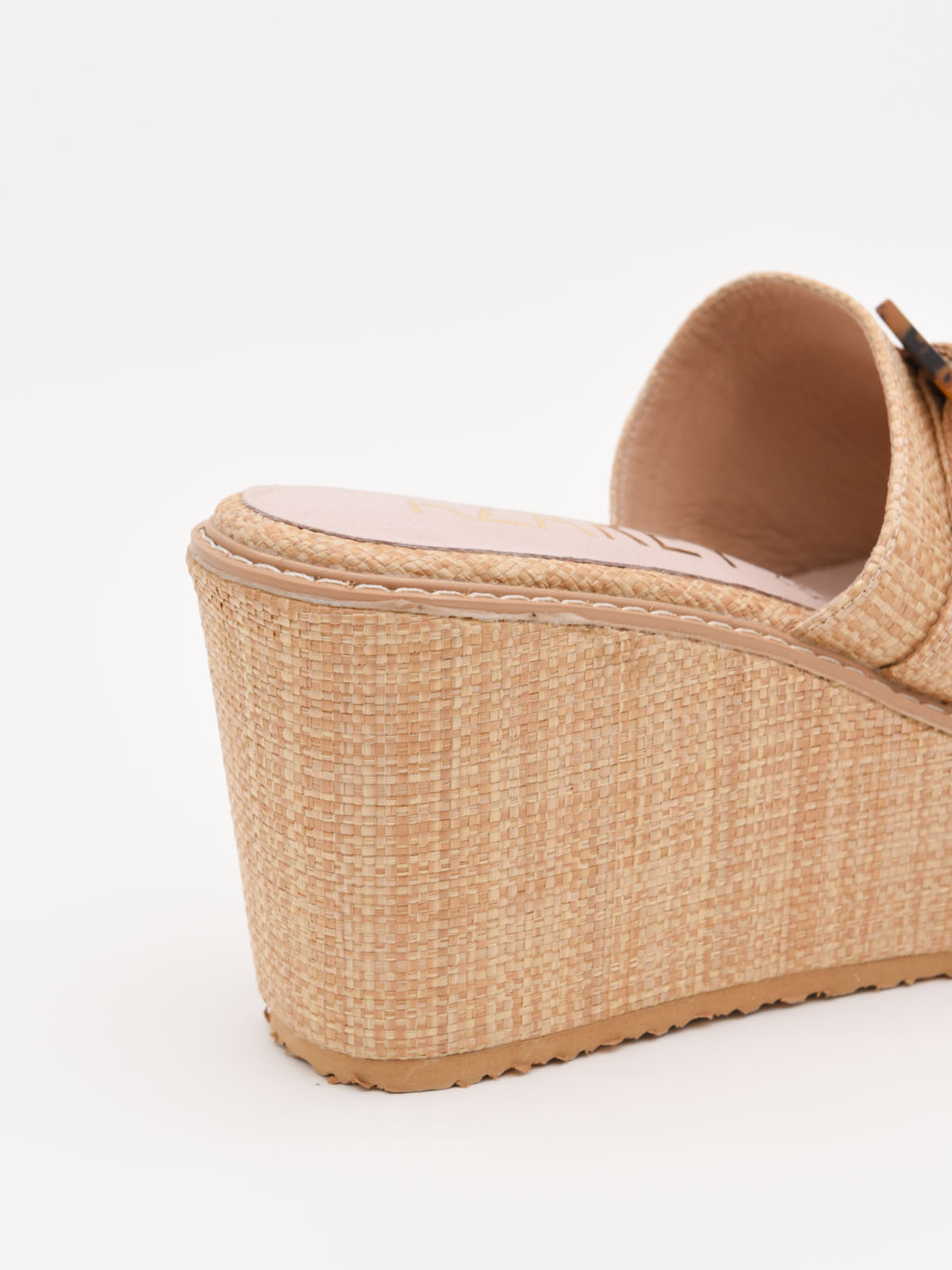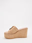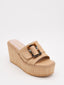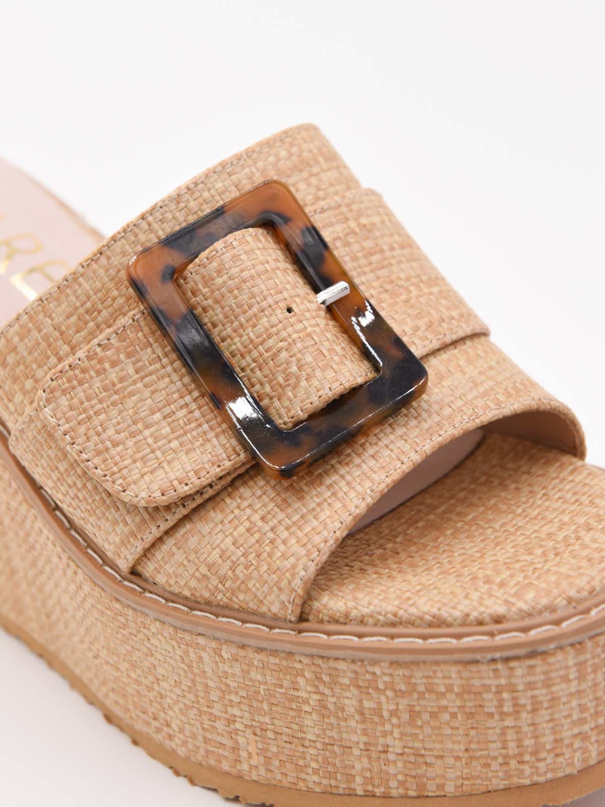 Sandalias de cuña beige con hebilla decorativa