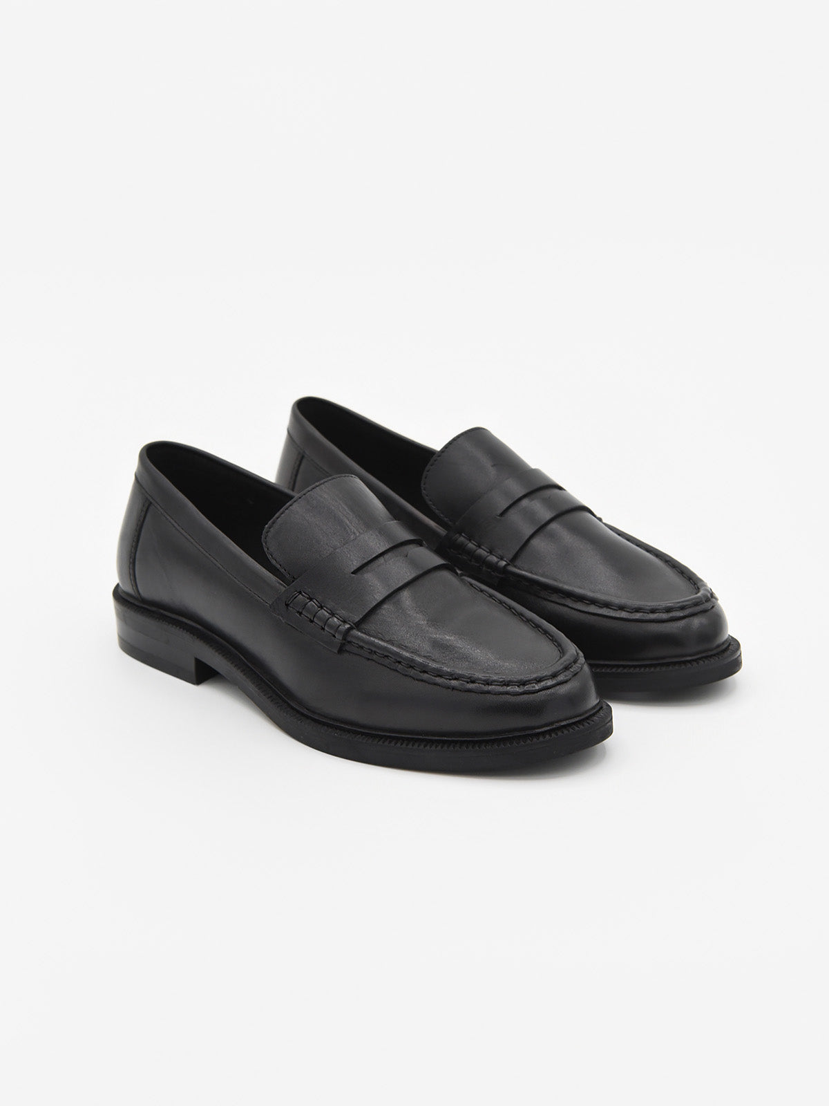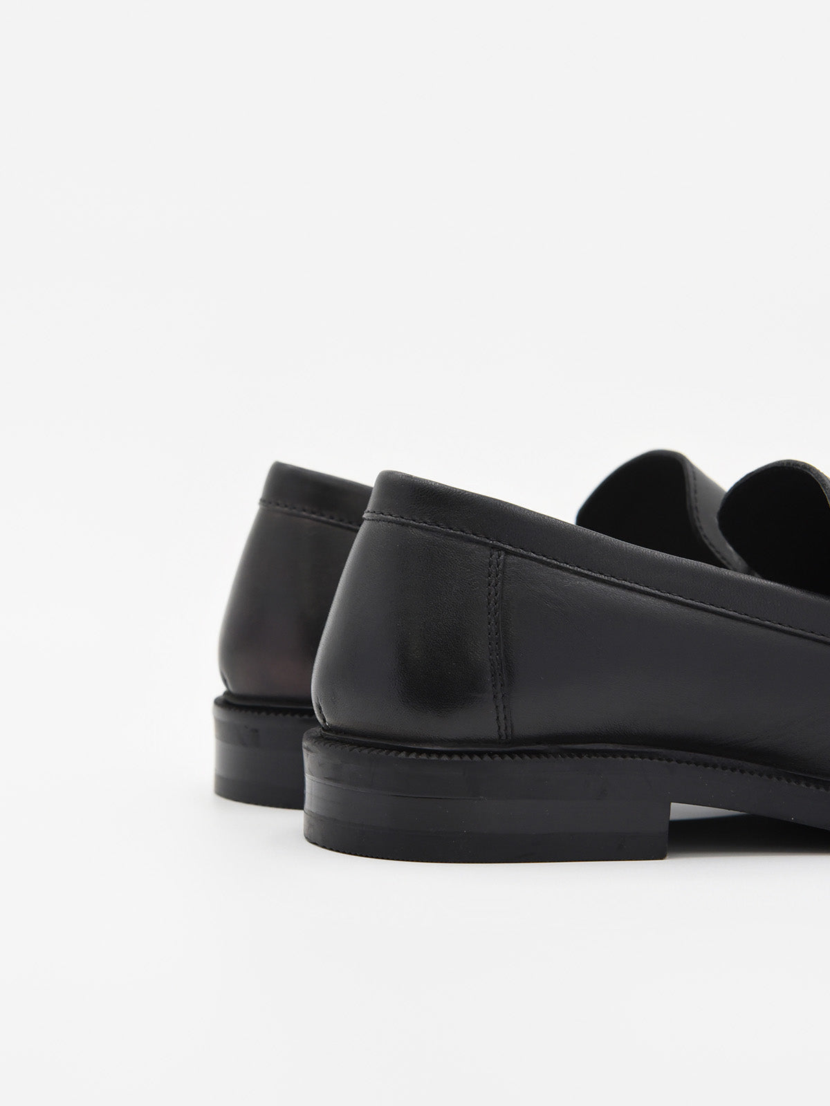 Unos mocasines de piel negros que se convierten en fondo de armario y elevan cualquier conjunto con discreta elegancia.