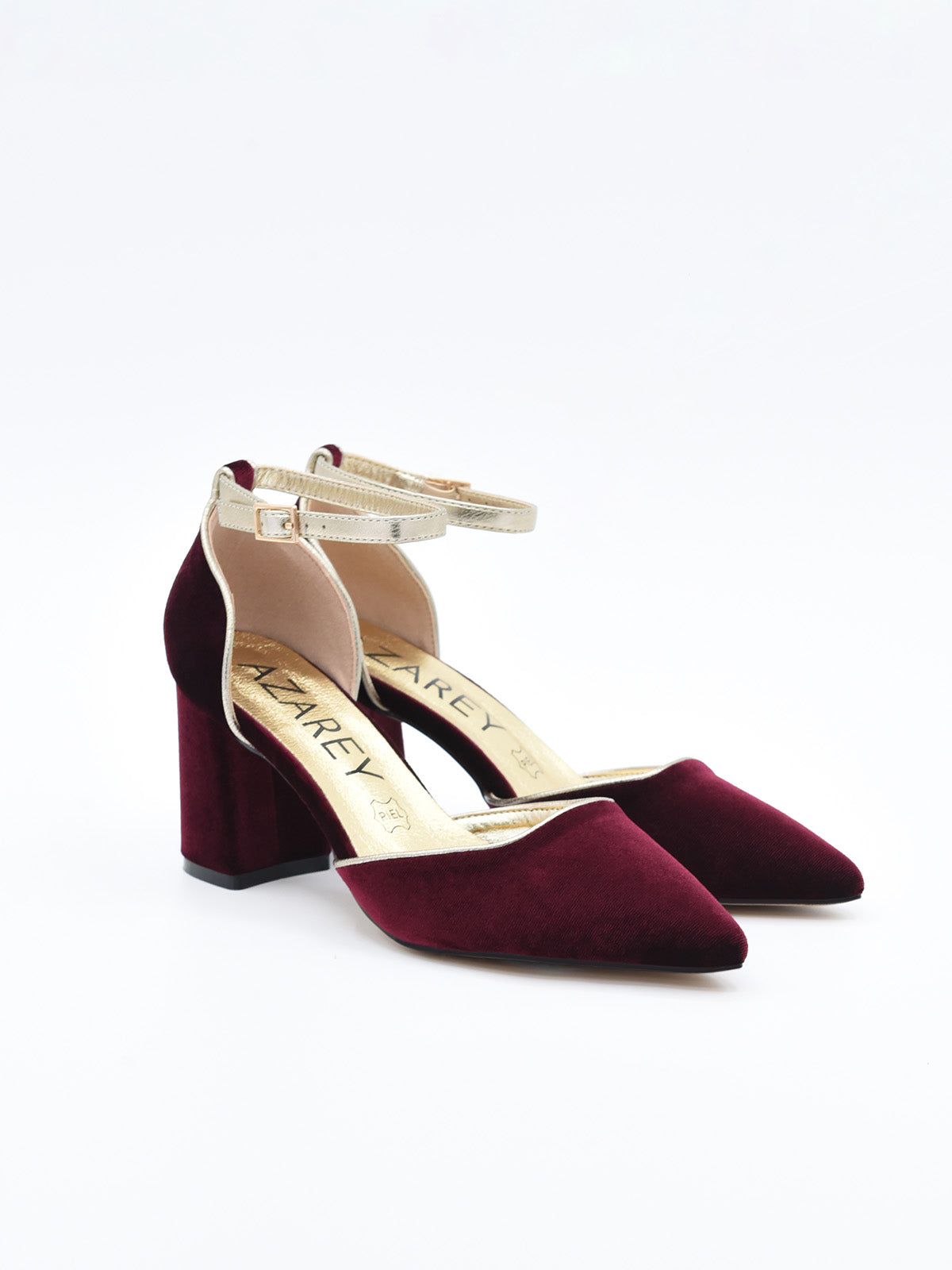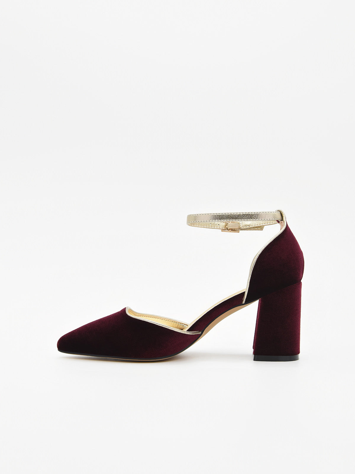 Estos zapatos de terciopelo burdeos tienen ese punto especial que hace que un look se vea cuidado al detalle. El tacón ancho estiliza sin cansar, y la plantilla de piel acolchada es un auténtico alivio para llevarlos horas sin pensar en el calzado. La pulsera dorada en el tobillo añade un toque sofisticado que combina igual de bien con un vestido de noche que con un pantalón elegante.