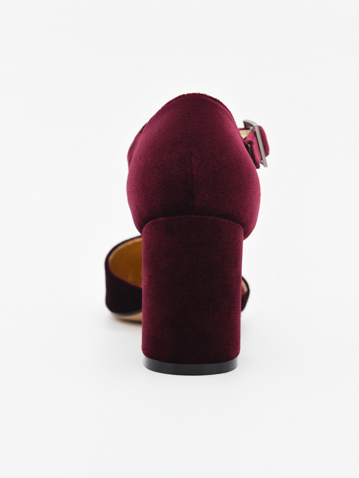 Zapato de Terciopelo Burdeos con tira en el empeine