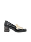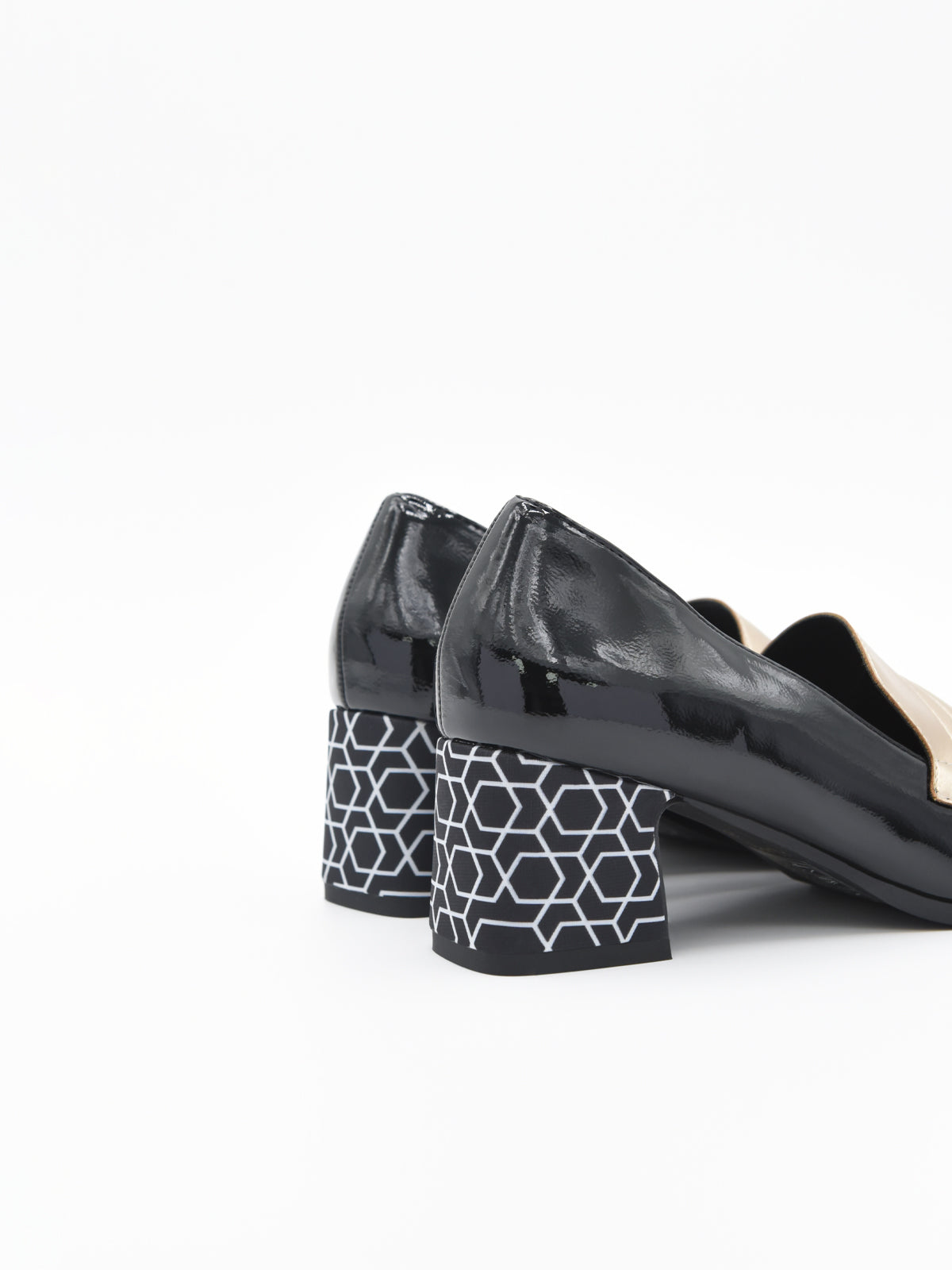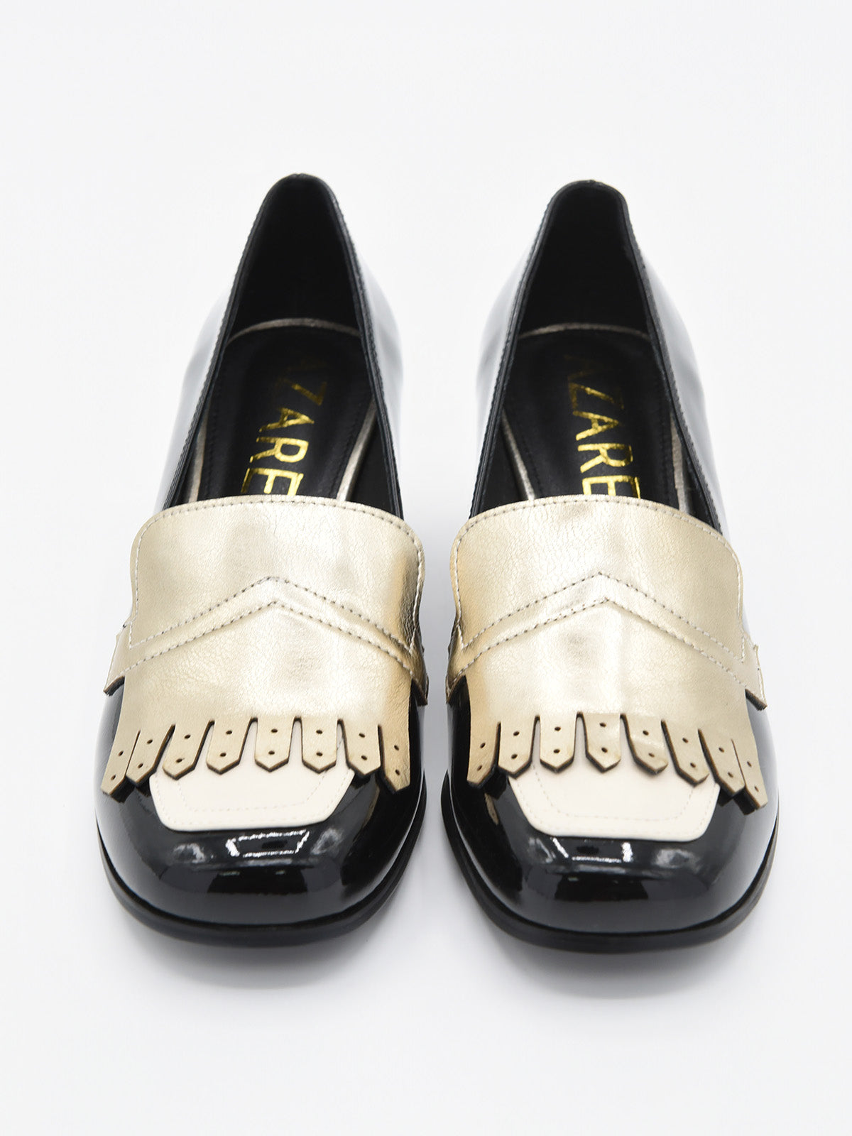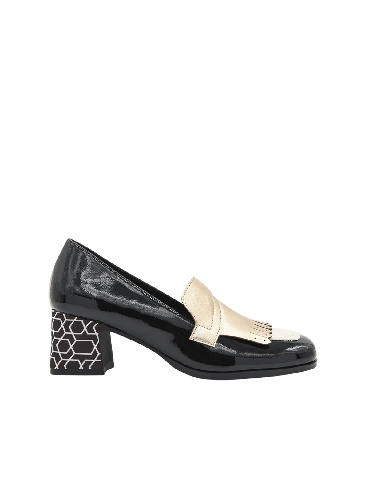 Zapatos de Charol Negros con Flecos y Tacón estampado
