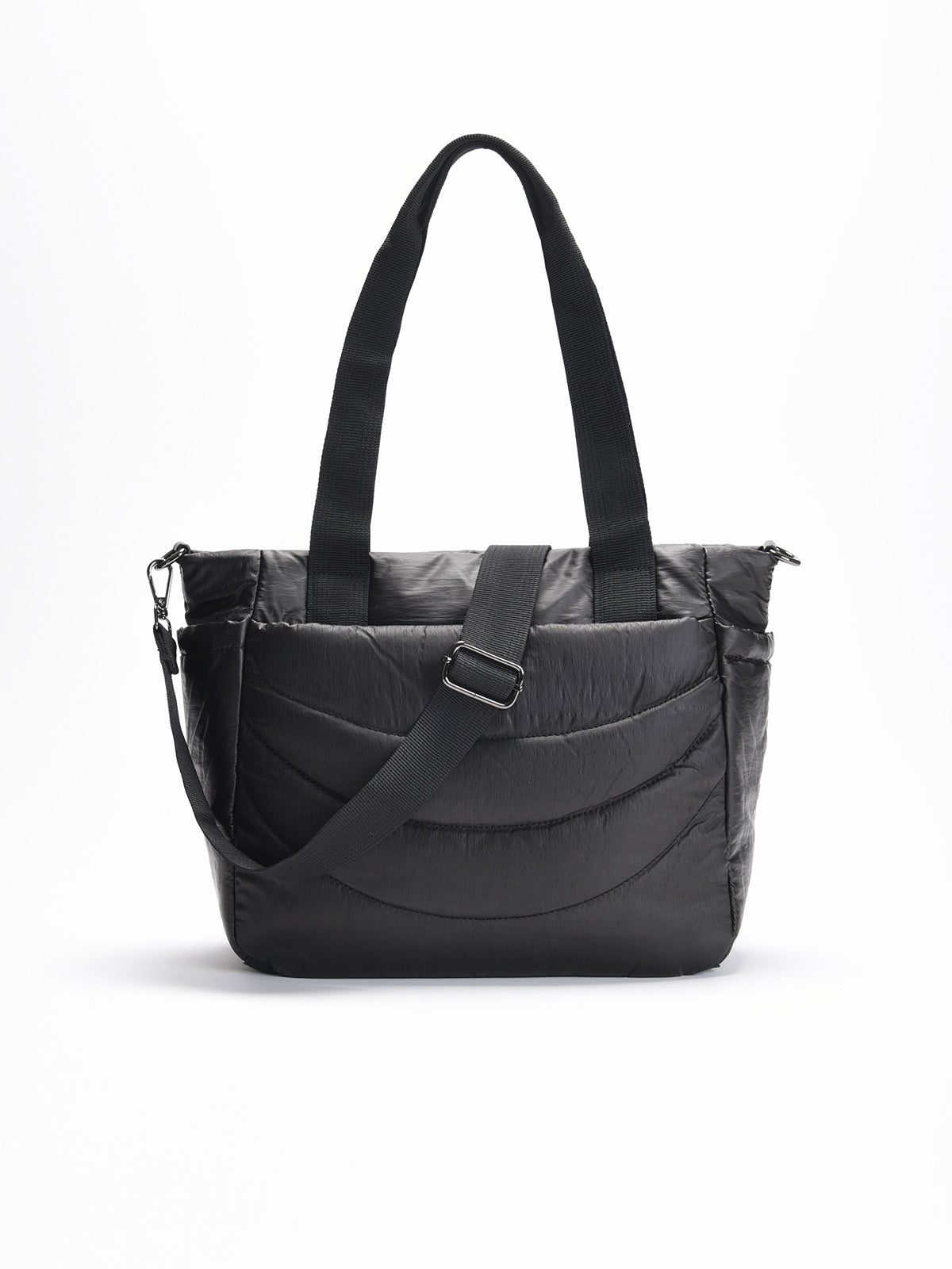 Este bolso shopper negro para mujer es el aliado perfecto para quienes buscan estilo, comodidad y practicidad en un único accesorio. Confeccionado en material acolchado de acabado satinado, combina resistencia y ligereza, aportando un aire urbano y sofisticado. Sus asas largas permiten llevarlo cómodamente al hombro, mientras que la bandolera ajustable y extraíble ofrece la opción de lucirlo cruzado en tus jornadas más activas.