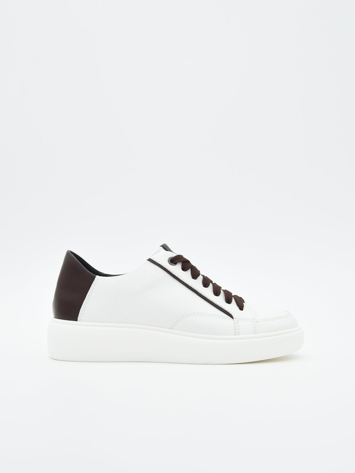Descubre las zapatillas blancas de mujer que van a elevar tu día a día: un diseño minimalista con un contraste irresistible gracias al color marrón en el talón y los cordones. Un producto pensado para mujeres que buscan comodidad, tendencia y un toque elegante sin renunciar a la versatilidad. Fabricadas con material suave y resistente, estas sneakers conquistan por su estilo limpio y su suela de plataforma ligera que estiliza sin esfuerzo.