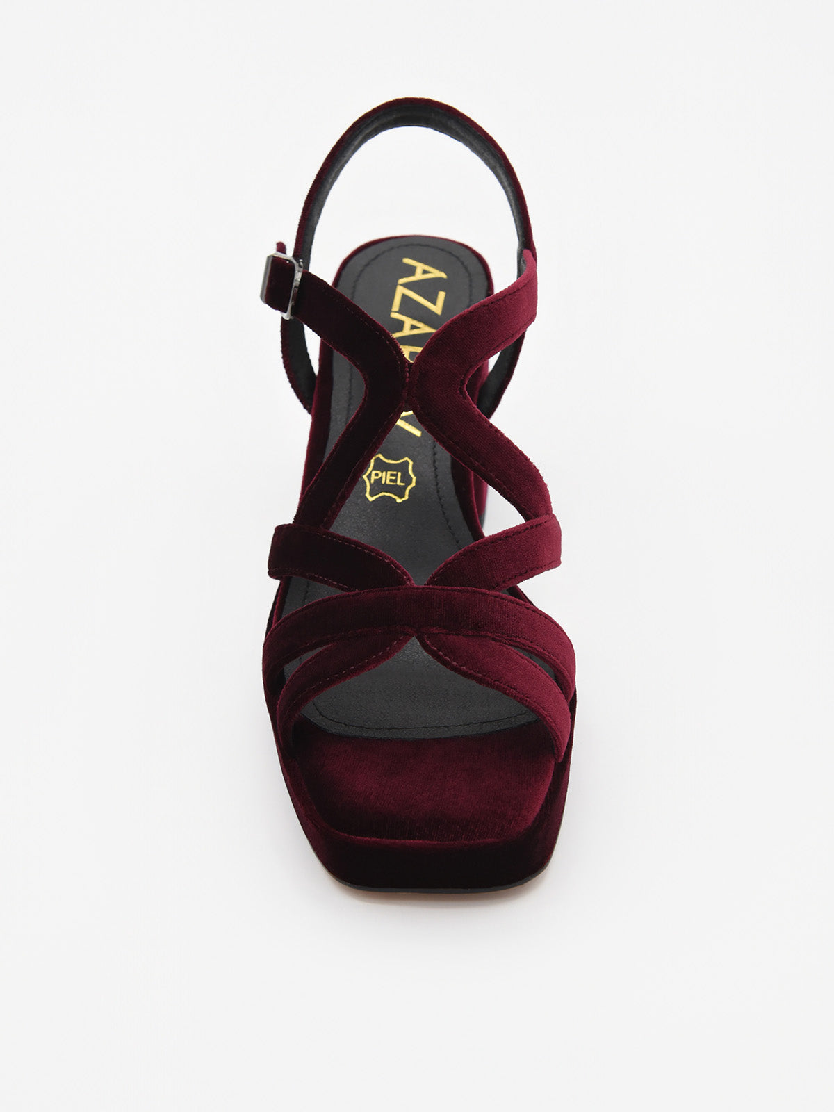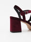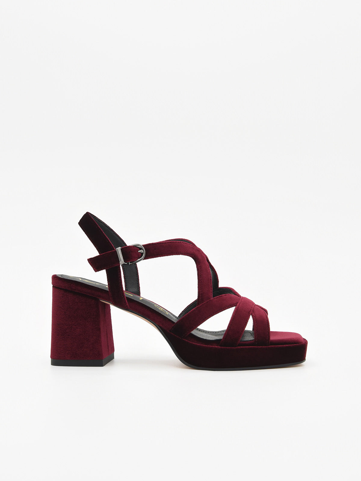 Veludo de sandália da Borgonha com salto largo e plataforma